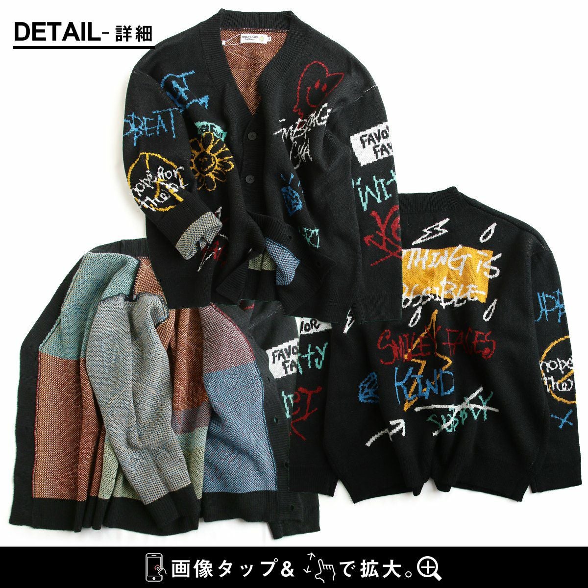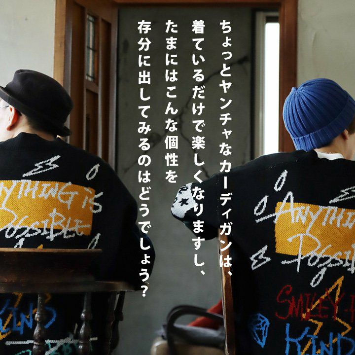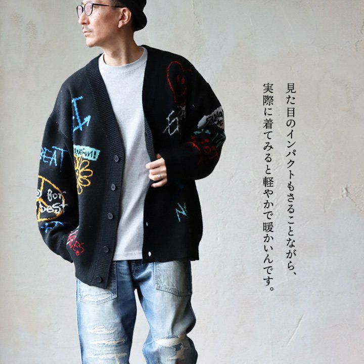 他の画像を見る 着ているだけで楽しくて、個性をプラス。 カーディガン カーデ 長袖 メンズ レディース Vネック アクリル100 厚手 伸縮性 暖かい ジャガード スマイル ロゴ ゆったり 大きいサイズ 体型カバー カジュアル 秋 冬 パティ 2~3日でお届け 販売価格 ¥ 9,790 税込 在庫切れ カートに入れる お気に入りに登録する