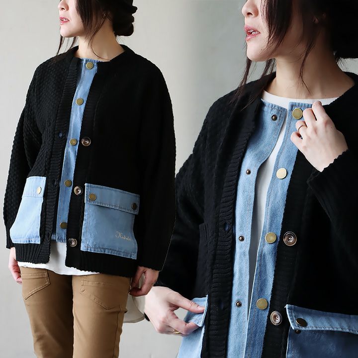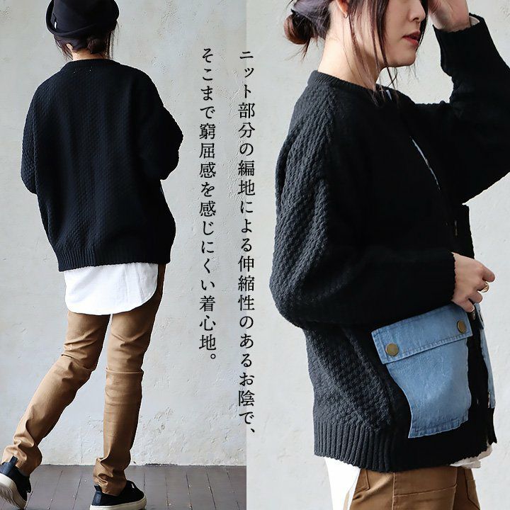 他の画像を見る こんな遊びもあったなんて。 ニット カーディガン カーデ 長袖 レディース クルーネック 鹿の子編み ニット デニム 異素材切り替え リメイク風 伸縮性 暖かい ポケット ゆったり カジュアル 秋 冬 パティ KAKELA&TRANQUIL カケラ&トランクイル 2~3日でお届け 販売価格 ¥ 10,780 税込 在庫切れ カートに入れる お気に入りに登録する