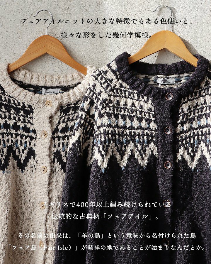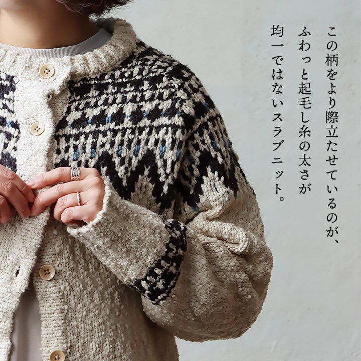 他の画像を見る クセになる心地よさ。暖かみのある素朴な柄。 カーディガン カーデ レディース クルーネック 重ね着 フェアアイル柄 ポリエステル スラブニット 伸縮性 暖かい 厚手 すっきり カジュアル 秋 冬 パティ 2~3日でお届け 販売価格 ¥ 7,590 税込 在庫切れ カートに入れる お気に入りに登録する