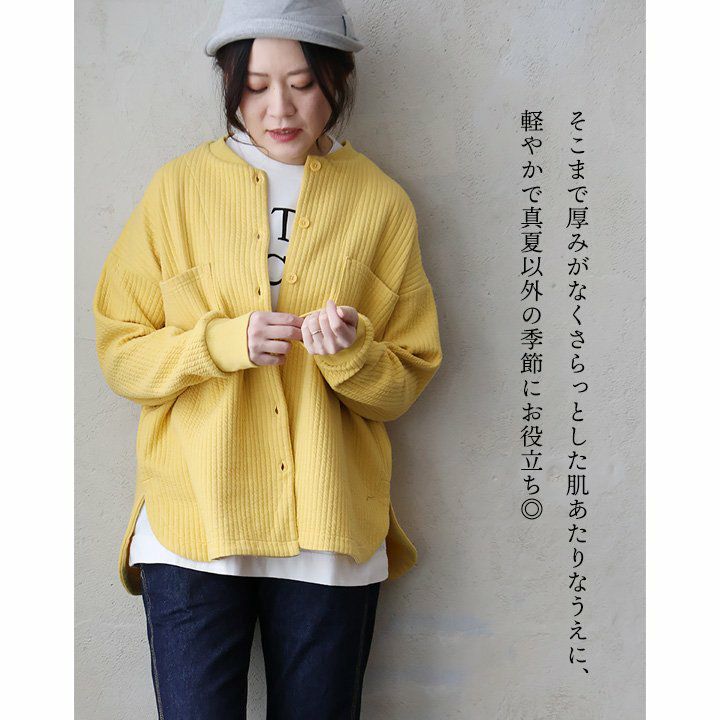 他の画像を見る デニムよりも軽やかなのに、デニムのような重厚感。 カーディガン ジャケット 長袖 レディース Vネック 綿100 コットン しっかり生地 タフ 伸縮性 軽い 袖カフス 大きいサイズ 体型カバー 重ね着 カジュアル 春 パティ COLORK カラック 2~3日でお届け 販売価格 ¥ 7,590 税込 在庫切れ カートに入れる お気に入りに登録する