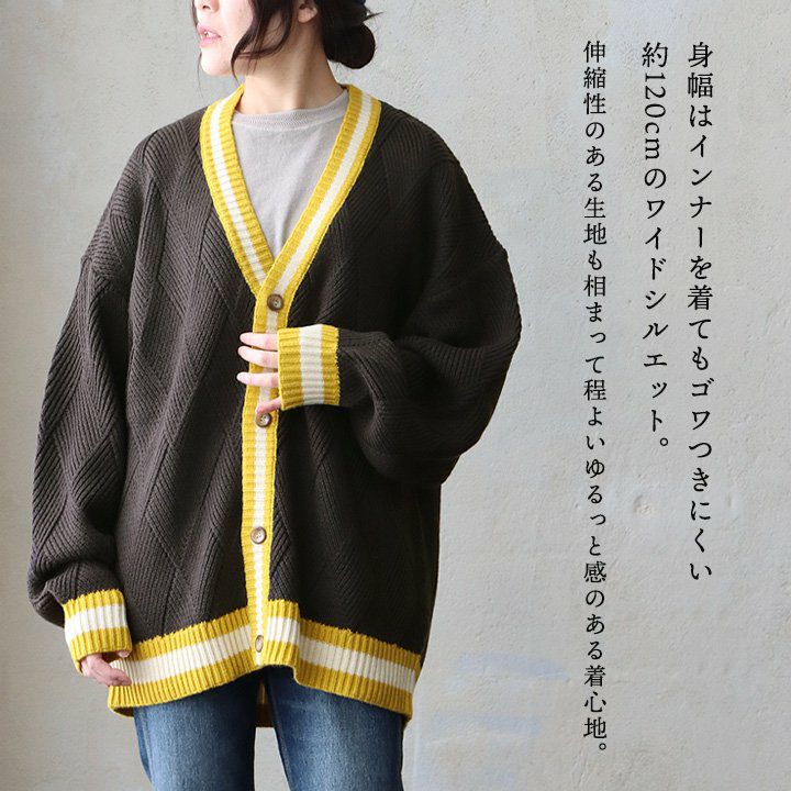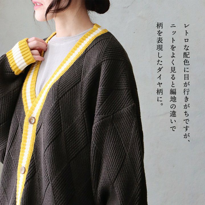 他の画像を見る ライン×柄のアソビが面白い。 カーディガン カーデ 長袖 Vネック 配色ライン 切り替え ダイヤ柄 アクリル100 チクチクしない 伸縮性 厚手 ゆったり 重ね着 大きいサイズ 体型カバー カジュアル 秋 冬 パティ GENTIL ジャンティ 2~3日でお届け 販売価格 ¥ 7,590 税込 在庫切れ カートに入れる お気に入りに登録する