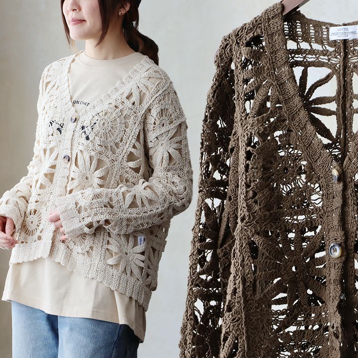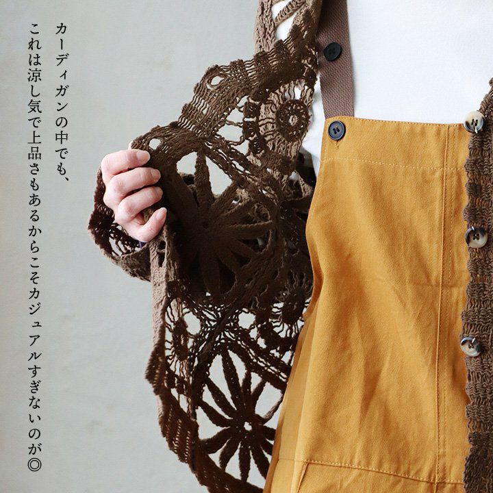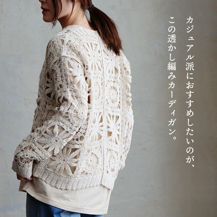 他の画像を見る 甘さを抑え、都会な雰囲気。 カーディガン 長袖 レディース Vネック 透かし編み レース かぎ針風 総柄 透け感 重ね着 涼しい 軽い ゆったり 大きいサイズ カジュアル パティ GENTIL ジャンティ 2~3日でお届け 販売価格 ¥ 7,590 税込 在庫切れ カートに入れる お気に入りに登録する
