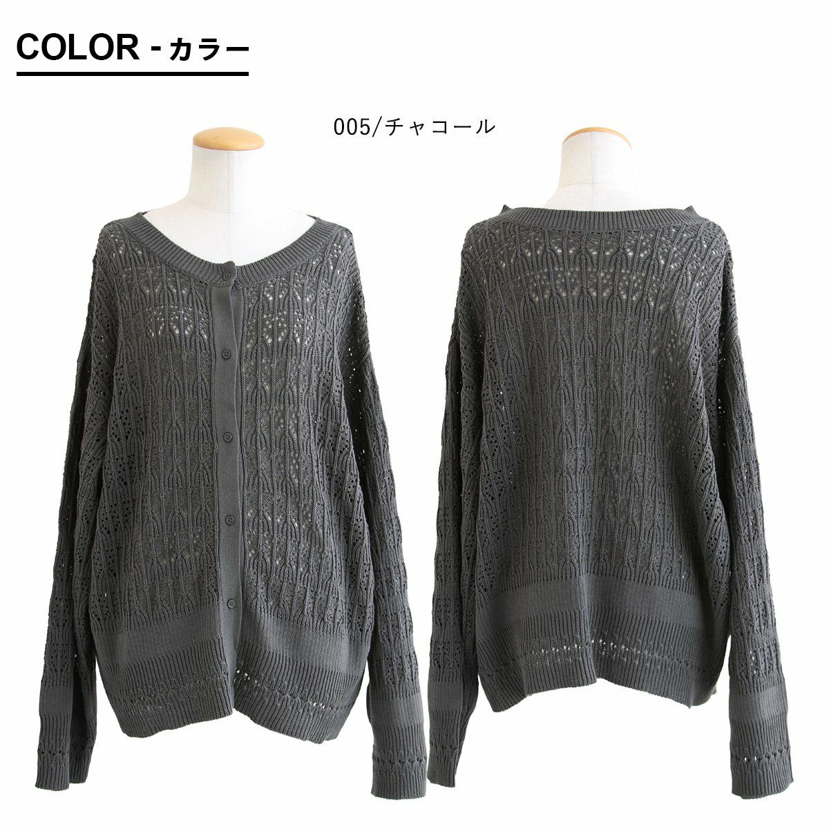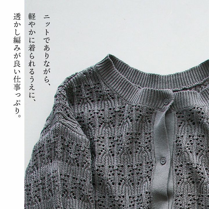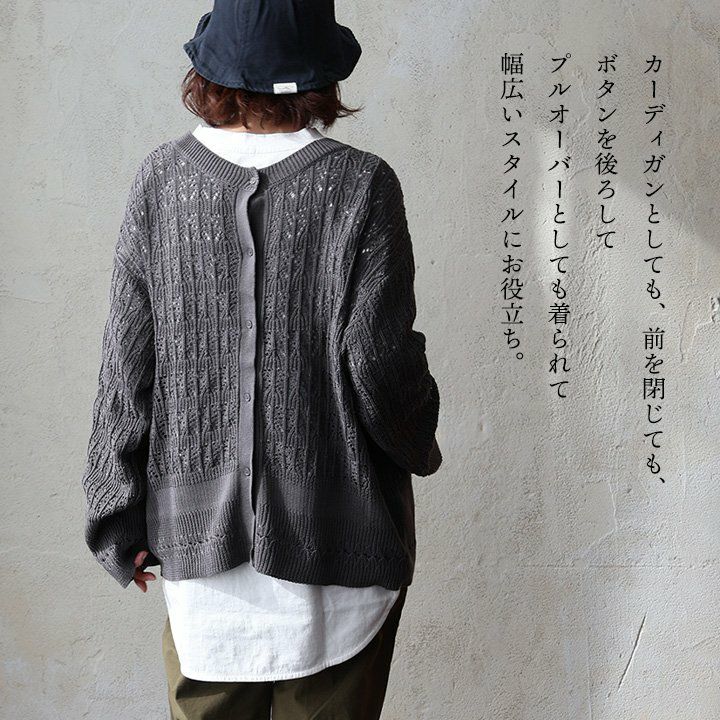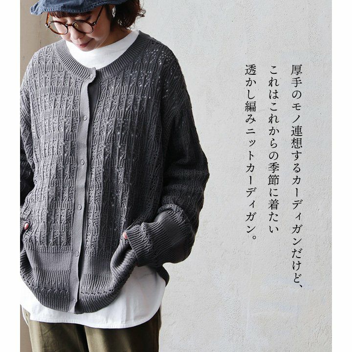 他の画像を見る 程よい透け感が、春気分。 カーディガン 長袖 レディース クルーネック アクリル コットン 前後 2WAY 透かし編み シアー コットン アクリル 伸縮性 ゆったり 大きいサイズ カジュアル パティ 2~3日でお届け 販売価格 ¥ 4,950 税込 在庫切れ カートに入れる お気に入りに登録する