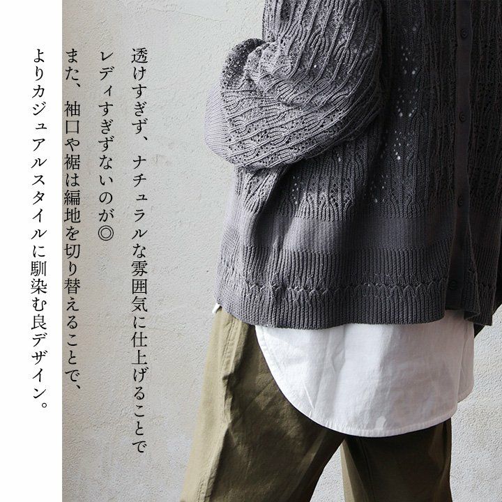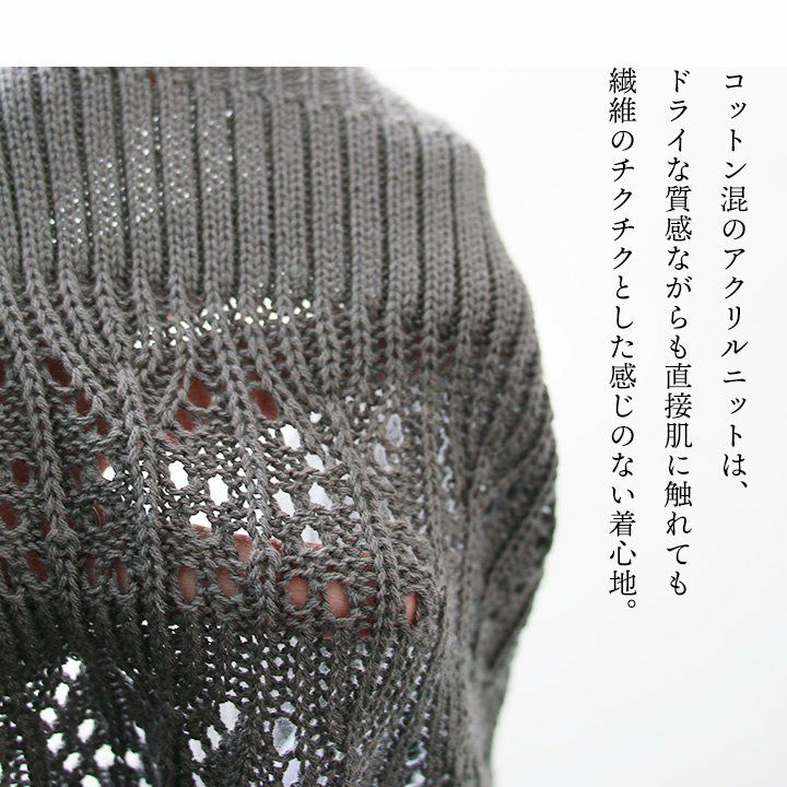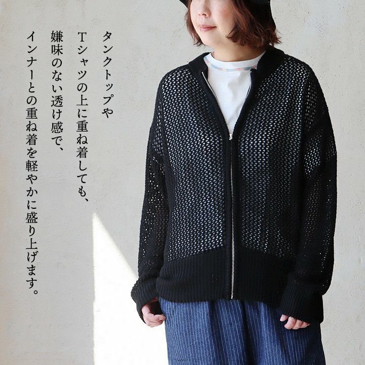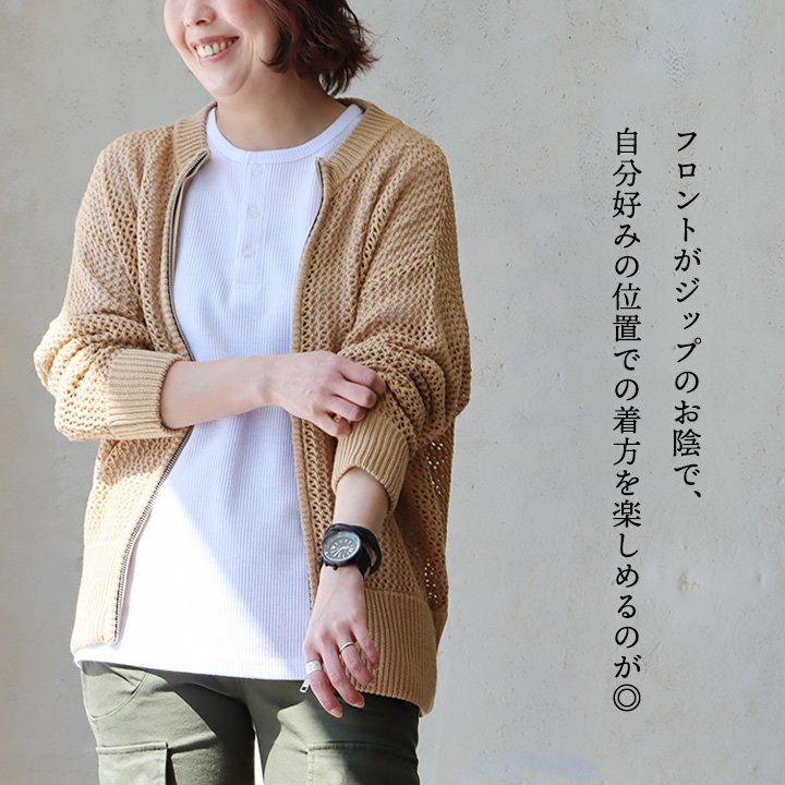 他の画像を見る 違った角度から楽しめる、嫌味のない「透け感」。 カーディガン 長袖 レディース クルーネック 重ね着 ジップ メッシュ 綿100 コットン 伸縮性 薄手 袖リブ ゆったり カジュアル 春 夏 パティ 2~3日でお届け 販売価格 ¥ 6,490 税込 在庫切れ カートに入れる お気に入りに登録する