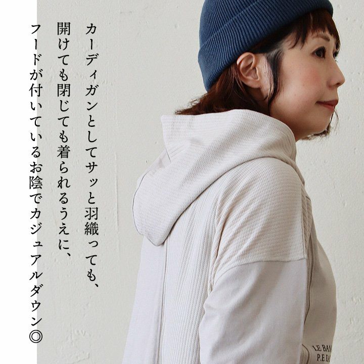 他の画像を見る カーディガンとパーカーの良いとこ取り。 カーディガン 長袖 フード付き レディース 異素材切り替え 重ね着 コットン ポリエステル ワッフル 布帛 ロゴ プリント 通気性 大きいサイズ 体型カバー カジュアル 春 パティ 2~3日でお届け 販売価格 ¥ 5,390 税込 在庫切れ カートに入れる お気に入りに登録する