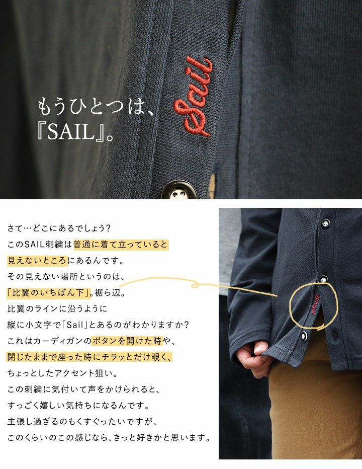 他の画像を見る シンプルなのに『お洒落見え』する、「ツバメ」カーデ。 (セイル) SAIL 長袖 カーディガン Vネック 『USAコットン 米綿 天竺』配色 ツバメ 燕 刺繍 ワンポイント 販売価格 ¥ 4,950 税込 在庫切れ 詳細を見る お気に入りに登録する