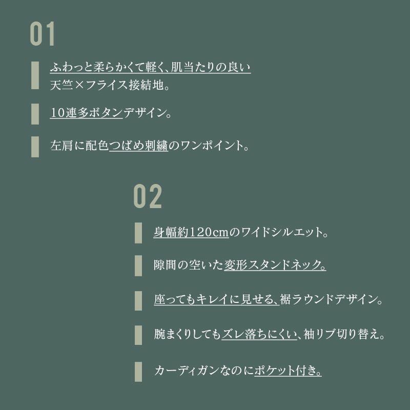 他の画像を見る 着痩せするゆるさとデザインで、2役こなす「ガシっと」カーディガン。 カーディガン 長袖 レディース お尻隠れる Vネック 綿100% 天竺 伸縮性 しっかり生地 丈夫 ワイドシルエット ゆったり 体型カバー 着痩せ カジュアル メンズライク PATY パティ meme ミーム 2~3日でお届け 販売価格 ¥ 4,950 税込 在庫切れ カートに入れる お気に入りに登録する