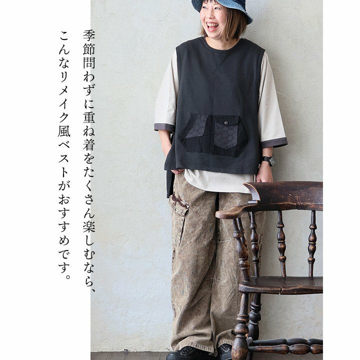 他の画像を見る ゆるいのに、甘くなく、いつもの私らしく着られる。 ベスト レディース Vネック 重ね着 綿100 コットン ポリエステル 布帛 ポケット 異素材切り替え 配色 ピグメント 褪せ色 ゆったり 大きいサイズ 体型カバー 着痩せ すっきり カジュアル パティ GENTIL ジャンティ 2~3日でお届け 販売価格 ¥ 6,490 税込 カートに入れる お気に入りに登録する