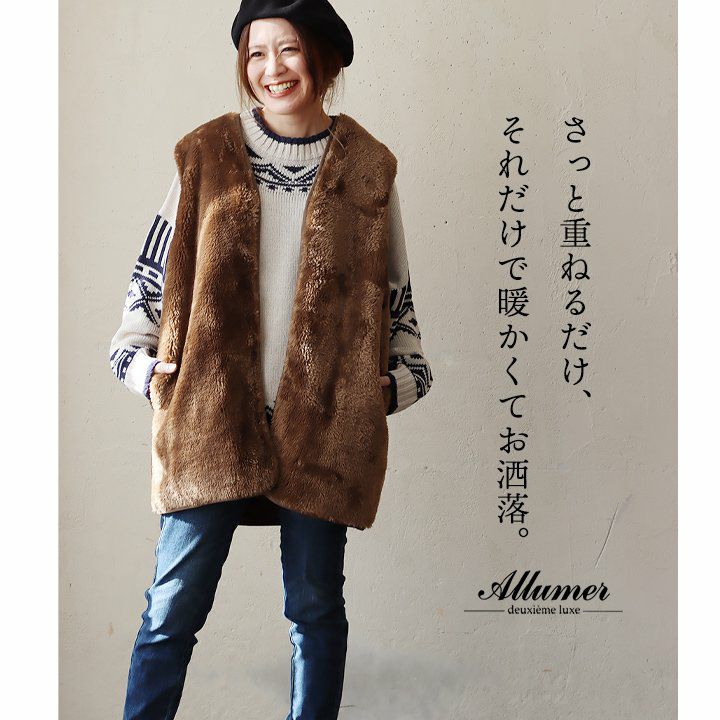 他の画像を見る さっと重ねるだけ、それだけで暖かくてお洒落。 ベスト ファーベスト レディース Vネック 重ね着 ポリエステル フェイクファー 防寒 暖かい ポケット付き ゆったり カジュアル PATY Allumer アリュメール 2~3日でお届け 販売価格 ¥ 13,200 税込 在庫切れ カートに入れる お気に入りに登録する