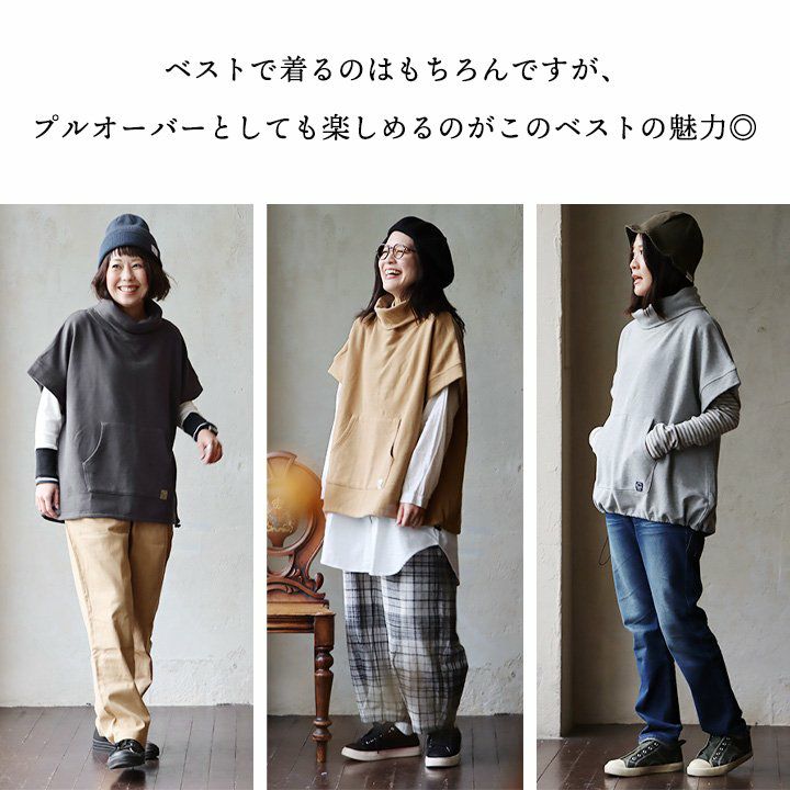 他の画像を見る 「重ね着」も「一枚」もマルチにお役立ち。 ベスト 5分袖 プルオーバー レディース ハイネック 重ね着 無地 綿100 コットン 裏毛 厚手 しっかり生地 伸縮性 大きいサイズ 体型カバー カジュアル 春 秋 冬 パティ 2~3日でお届け 販売価格 ¥ 6,490 税込 在庫切れ カートに入れる お気に入りに登録する