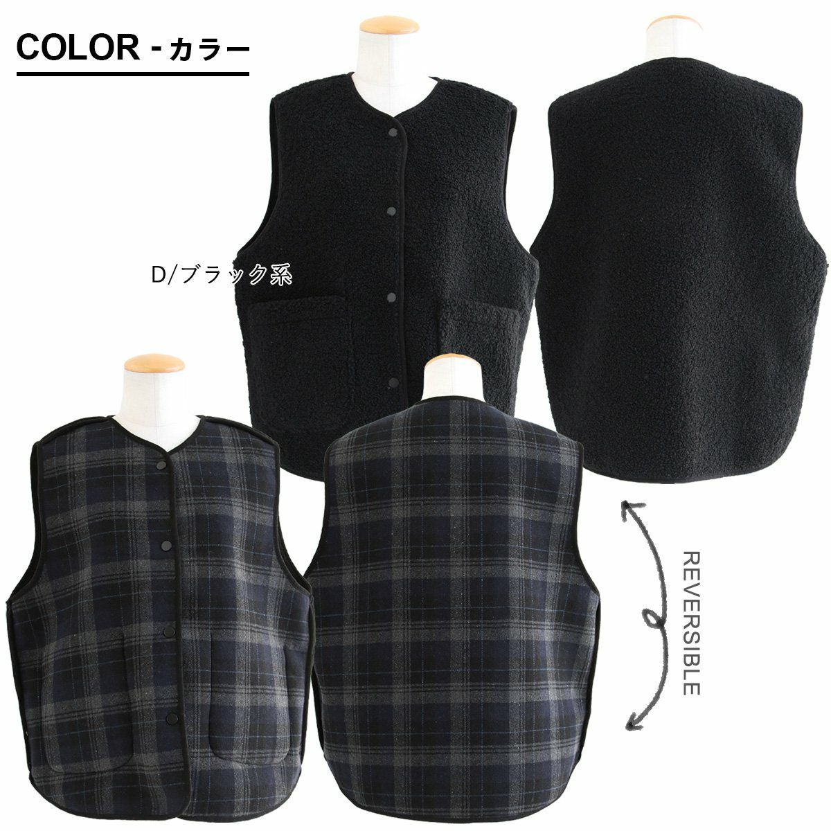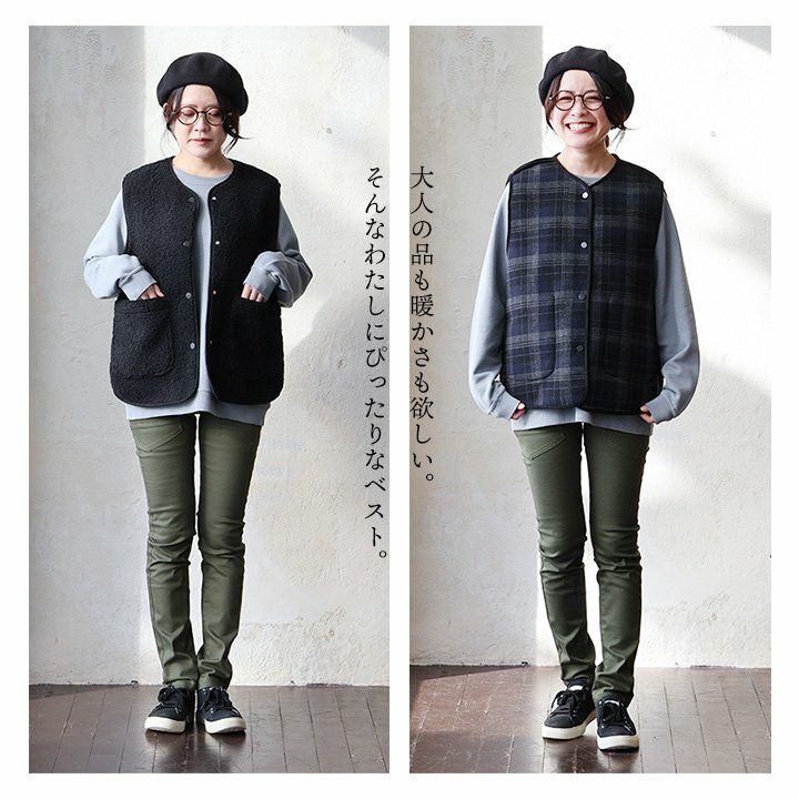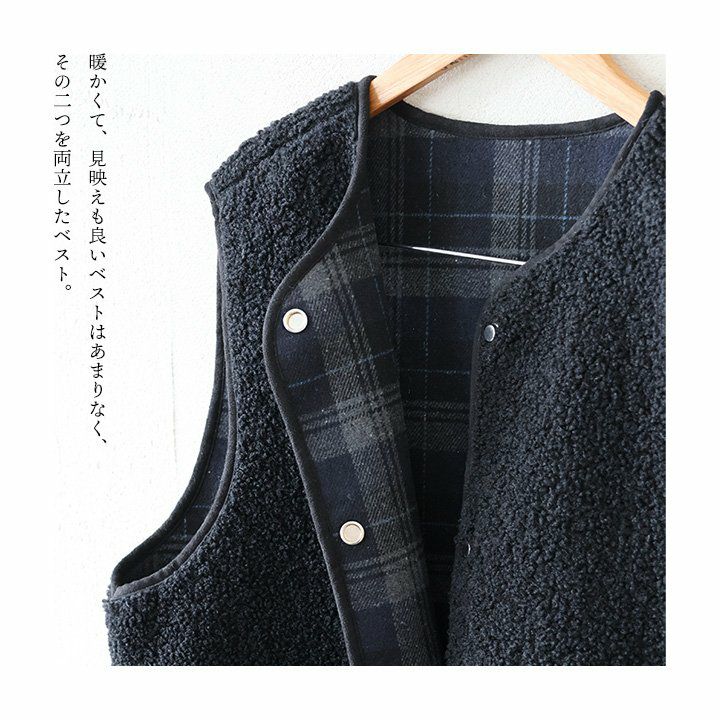 他の画像を見る 大人の品も暖かさも欲しいから。 ベスト レディース 無地 チェック柄 リバーシブル 重ね着 シープボア フランネル ポリエステル 暖かい 保温性 すっきり カジュアル 秋 冬 パティ COLORK カラック 2~3日でお届け 販売価格 ¥ 6,490 税込 在庫切れ カートに入れる お気に入りに登録する