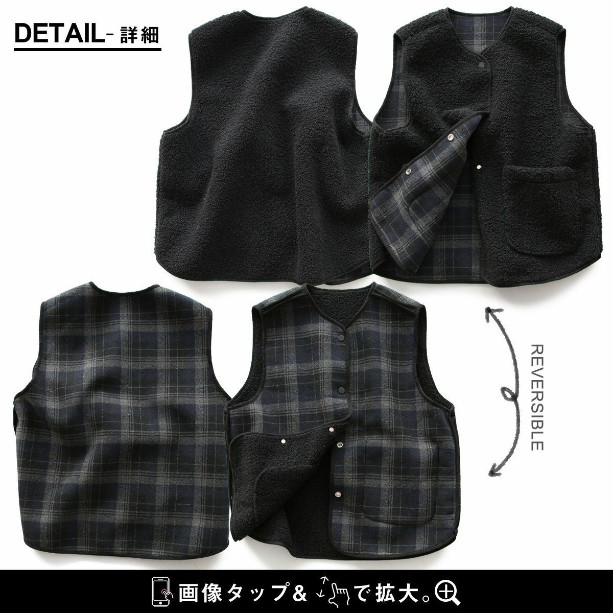 他の画像を見る 「チグハグ」が面白くて、ひっくり返しても楽しめちゃう。 ベスト レディース 重ね着 異素材切り替え リバーシブル キルティング シャギー ボア ポリエステル ナイロン 大きいサイズ 体型カバー カジュアル 秋 冬 パティ GENTIL ジャンティ 2~3日でお届け 販売価格 ¥ 6,600 税込 在庫切れ カートに入れる お気に入りに登録する
