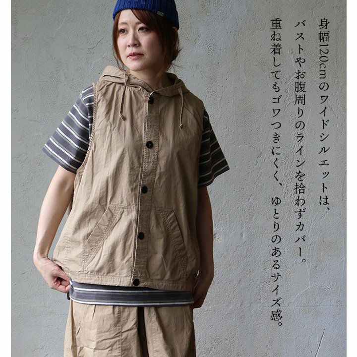 他の画像を見る カジュアル派のツボを押さえた、重ね着を盛り上げる「ベスト」。 ベスト 半袖 フレンチスリーブ レディース 重ね着 フード付き 刺繍 ロゴ 綿100 コットン ツイル 薄手 軽い ゆったり 大きいサイズ 体型カバー カジュアル 夏 パティ KAKELA&TRANQUIL カケラ&トランクイル 2~3日でお届け 販売価格 ¥ 9,790 税込 在庫切れ カートに入れる お気に入りに登録する