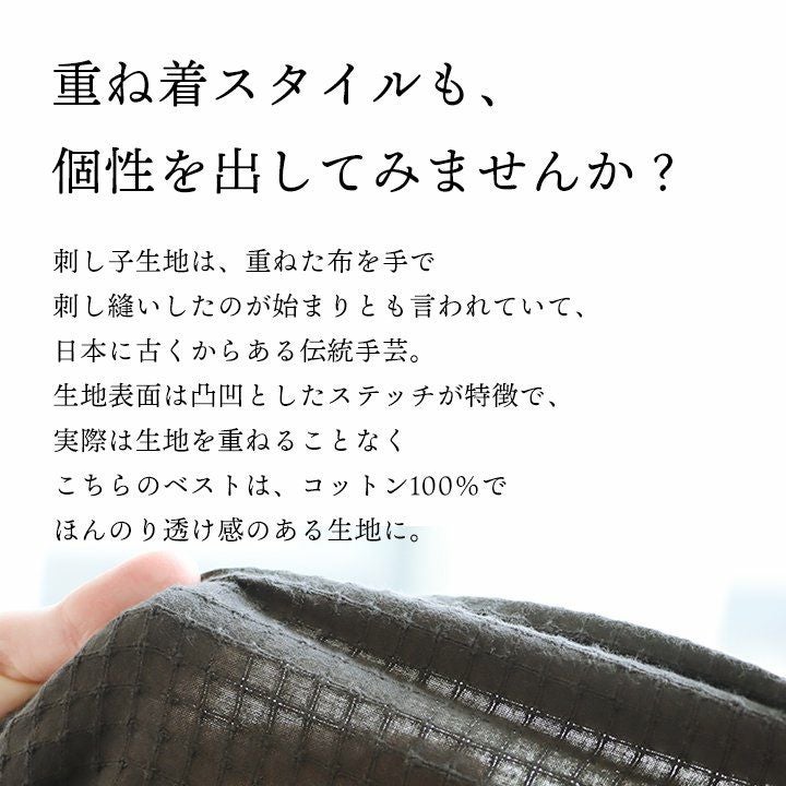 他の画像を見る 伝統あるものを、私は「今」らしく。 ベスト レディース Vネック 無地 綿100% 刺し子風 日本製 国産 薄手 涼しい 重ね着 レイヤード ゆったり 体型カバー カジュアル PATY パティ sabbatum サバタム 2~3日でお届け 販売価格 ¥ 11,880 税込 在庫切れ カートに入れる お気に入りに登録する