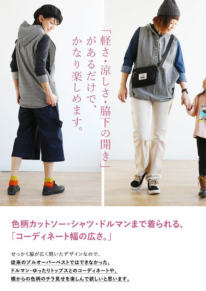 他の画像を見る 重ねているのに、着痩せして見える、涼しいゆるベスト。 (セイル) SAIL ベスト プルオーバー ヘンリーネック フード カシュクール ロング丈 チェック 綿麻 販売価格 ¥ 4,290 税込 在庫切れ 詳細を見る お気に入りに登録する