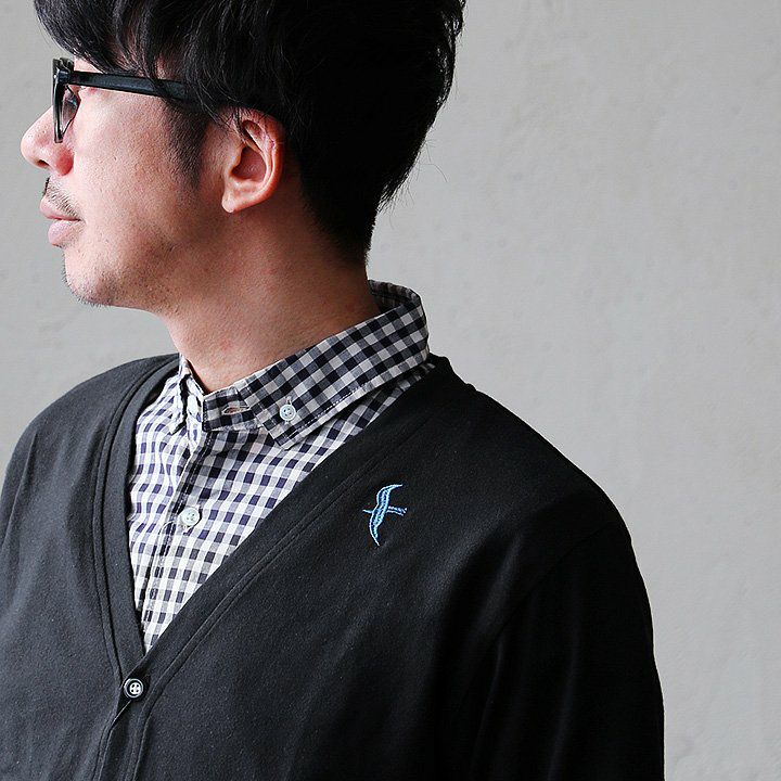 シンプルなのに『お洒落見え』する、「ツバメ」カーデ。 長袖 カーディガン カーデ 袖リブ Vネック 『USAコットン 米綿 天竺』 首元 配色 ツバメ 燕 刺繍 比翼 裾 ネーム刺繍 メンズ レディース トップス カジュアル 重ね着 | カーデガン ワンポイント SAIL [セイル]