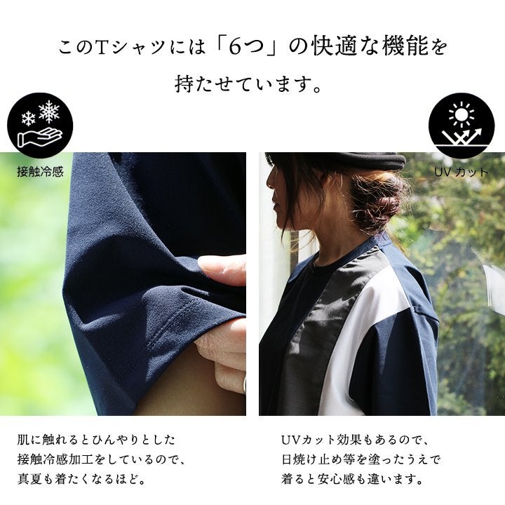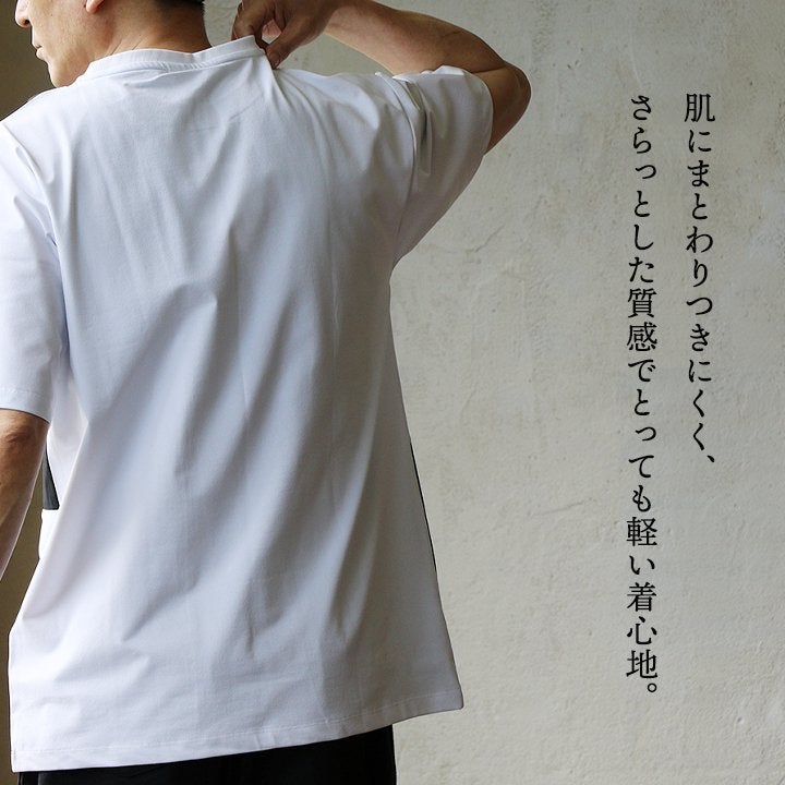 大人好みのアソビと快適さ。 Tシャツ 半袖 メンズ レディース クルーネック ポリエステル レーヨン 涼しい 接触冷感 伸縮性 UVカット 吸水速乾 抗ピリング 軽量 配色切り替え 大きいサイズ カジュアル 夏 パティ
