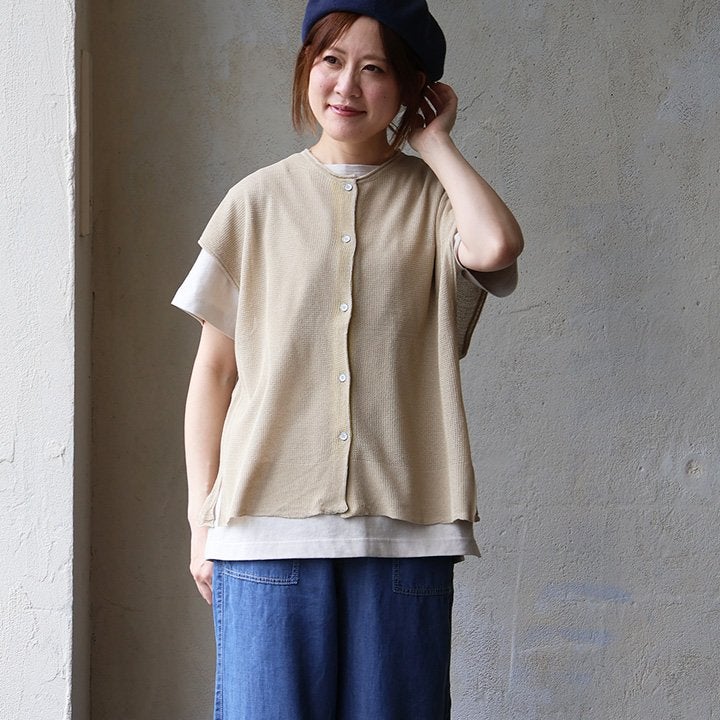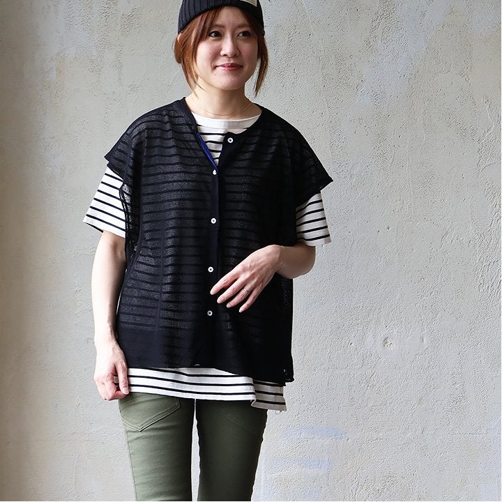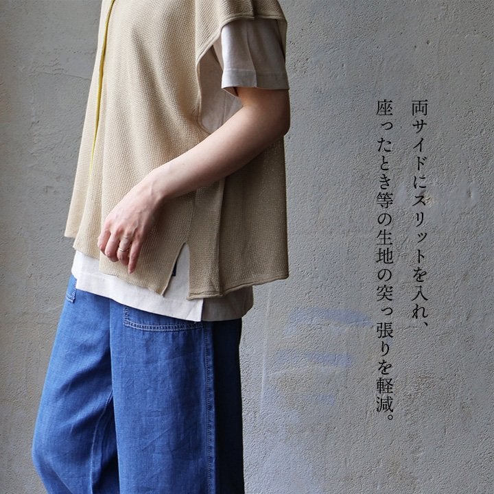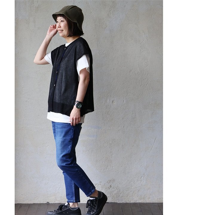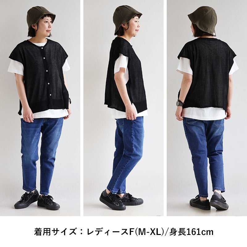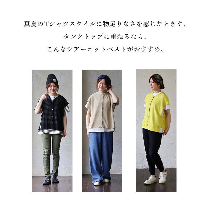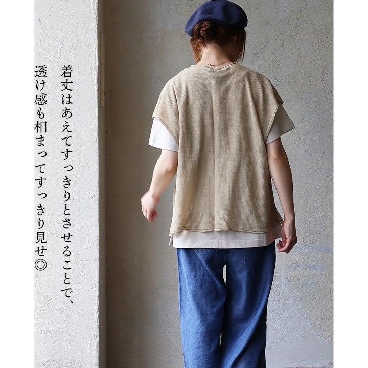 真夏の重ね着が「涼しく」見違える。 【メール便50】 ベスト 前開き レディース フレンチスリーブ クルーネック シアーニット 重ね着 無地 薄手 涼しい 軽い ゆったり 大きいサイズ 体型カバー カジュアル 夏 パティ GENTIL ジャンティ