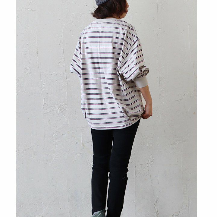 包み込んでくれるような、安心感。 ロンT 長袖 レディース お尻隠れる 着痩せ クルーネック ボーダー 配色切り替え コットン100% 綿 ゆったり 大きいサイズ 体型カバー カジュアル PATY パティ GENTIL ジャンティ