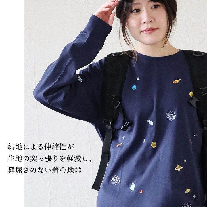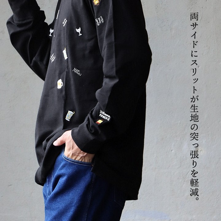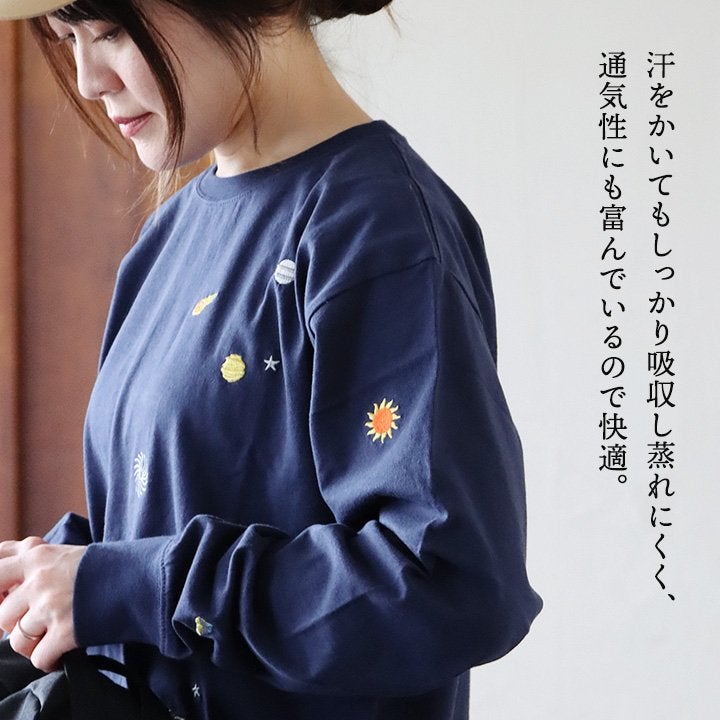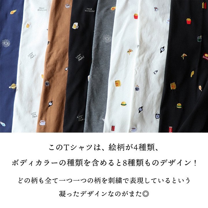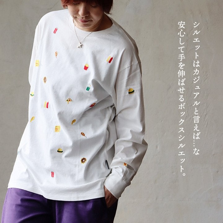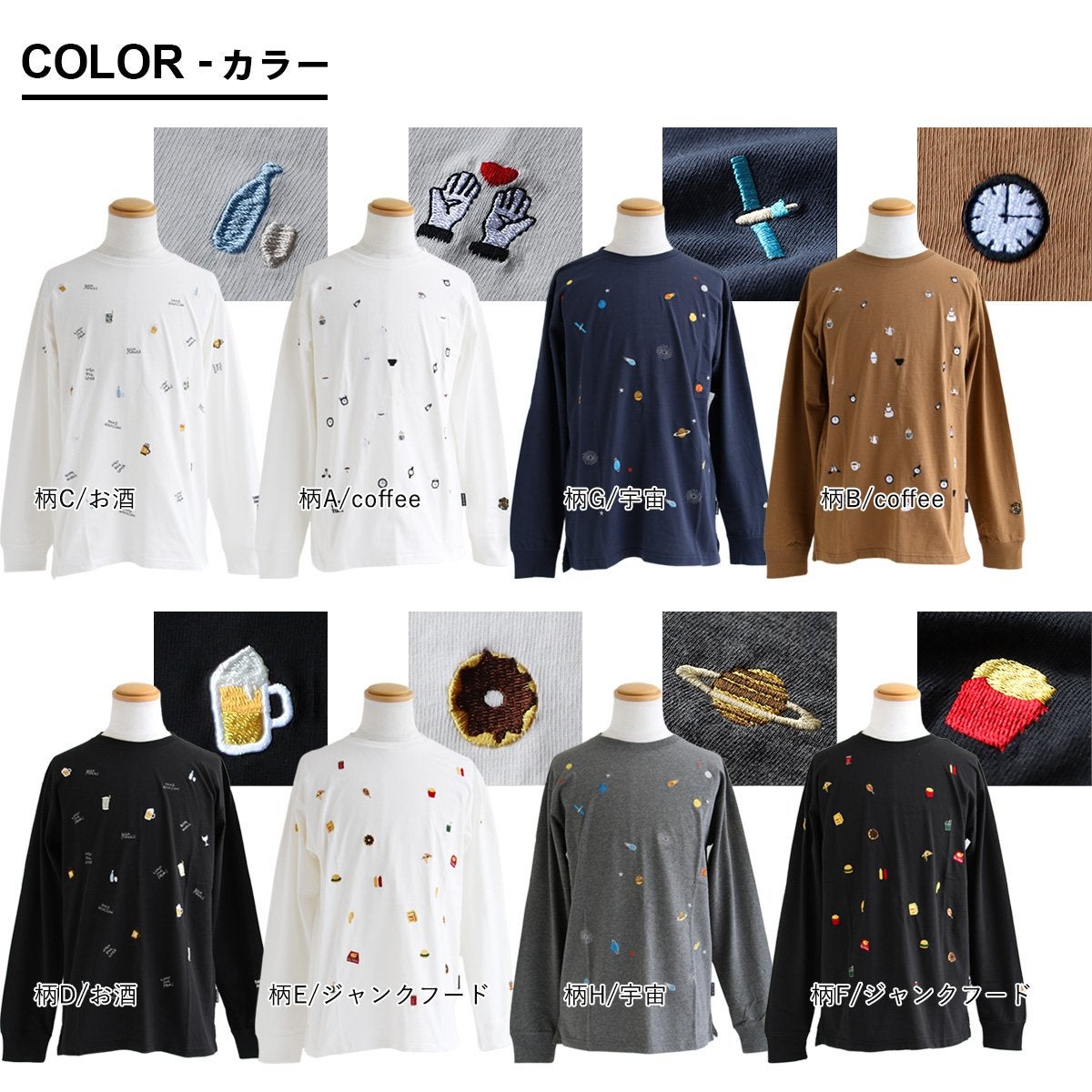 自分の「お気に入り」を刺繍で表現! Tシャツ 長袖 メンズ レディース クルーネック 刺繍 イラスト ワンポイント 米綿 USA コットン しっかり生地 タフ ボックスシルエット 体型カバー 大きいサイズ カジュアル パティ