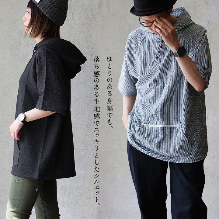 涼しく心地良い「今」のポロシャツ。 【メール便50】 ポロシャツ 涼しい メンズ レディース 夏 おしゃれ 着やせ ビッグシルエット ワイド 5分袖 切り替え 伸びる シアサッカー 薄手 ワンポイント ロゴ刺繍 二の腕 体系 カバー カジュアル パティ SAIL セイル