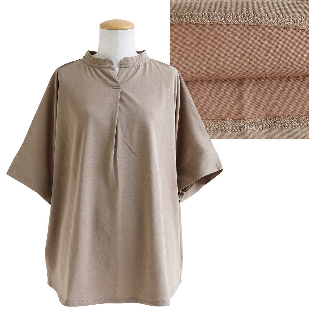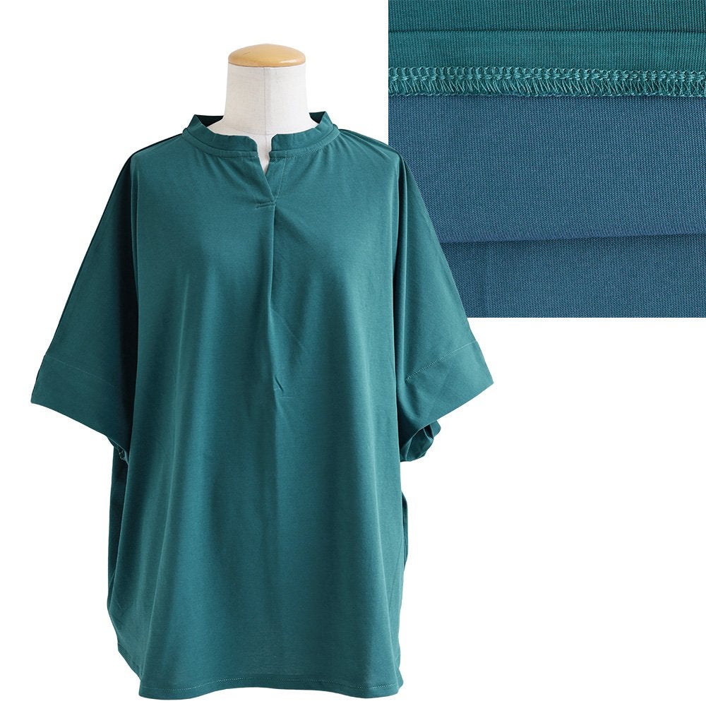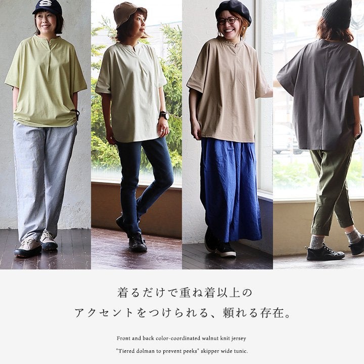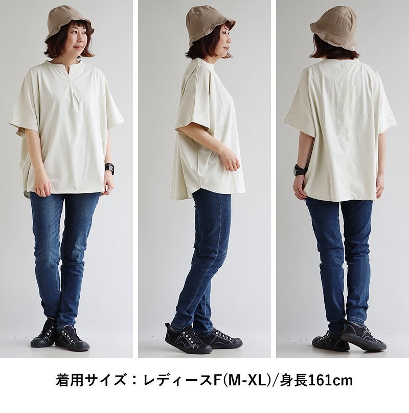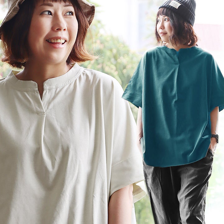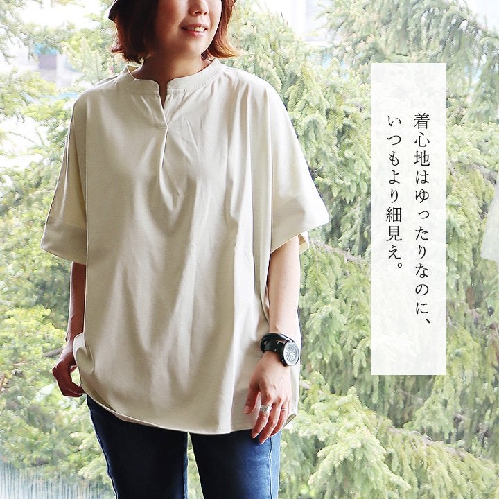 スッキリ見える理由は、さり気なく、でもあればあるほど良い。 【メール便50】 着痩せ tシャツ レディース 5分袖 キーネック ワイド すっきり 落ち感 サラサラ シワになりにくい 細見え 二の腕 お尻 体系 隠れ カバー 重ね着 カジュアル 大人 カジュアル パティ