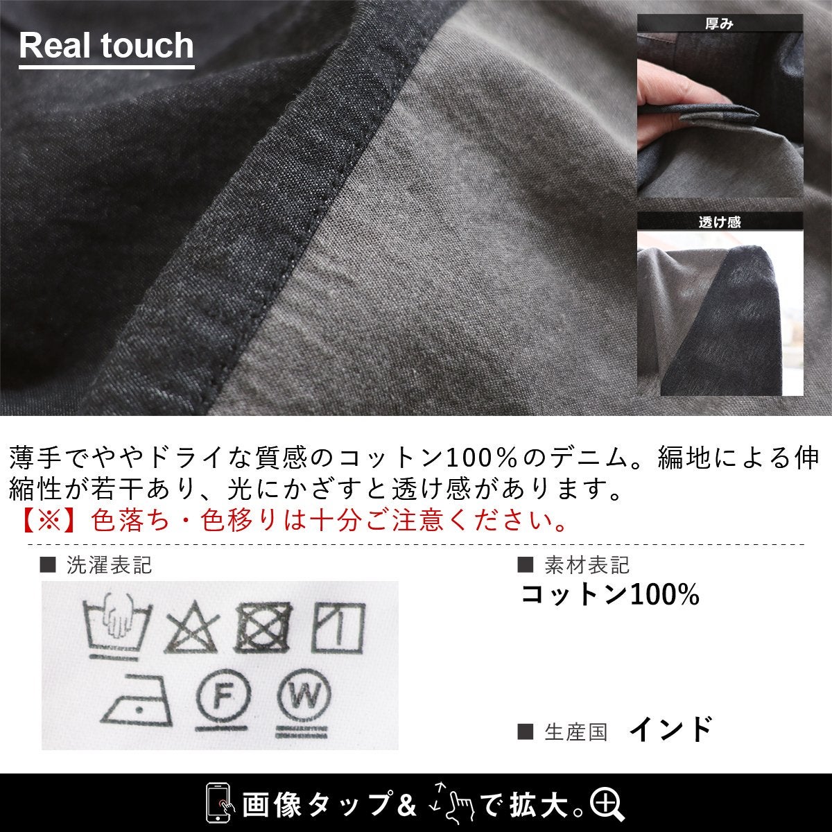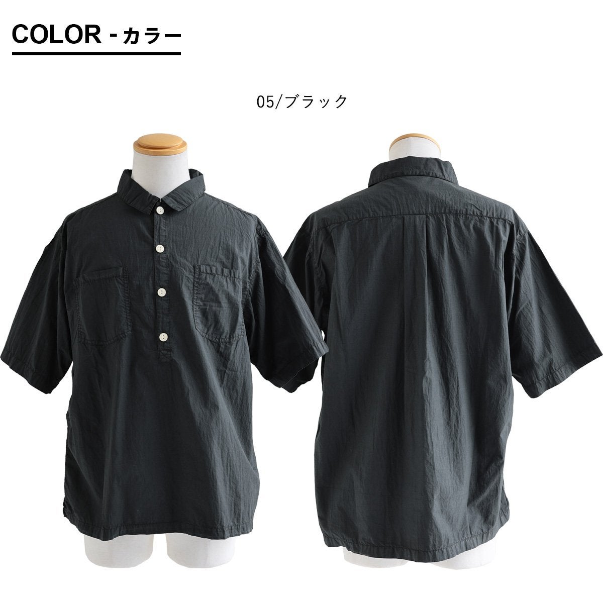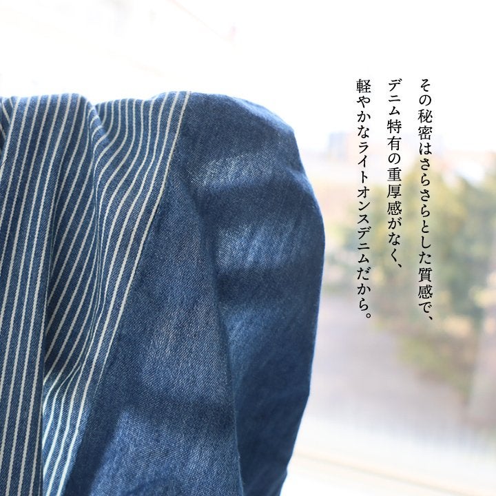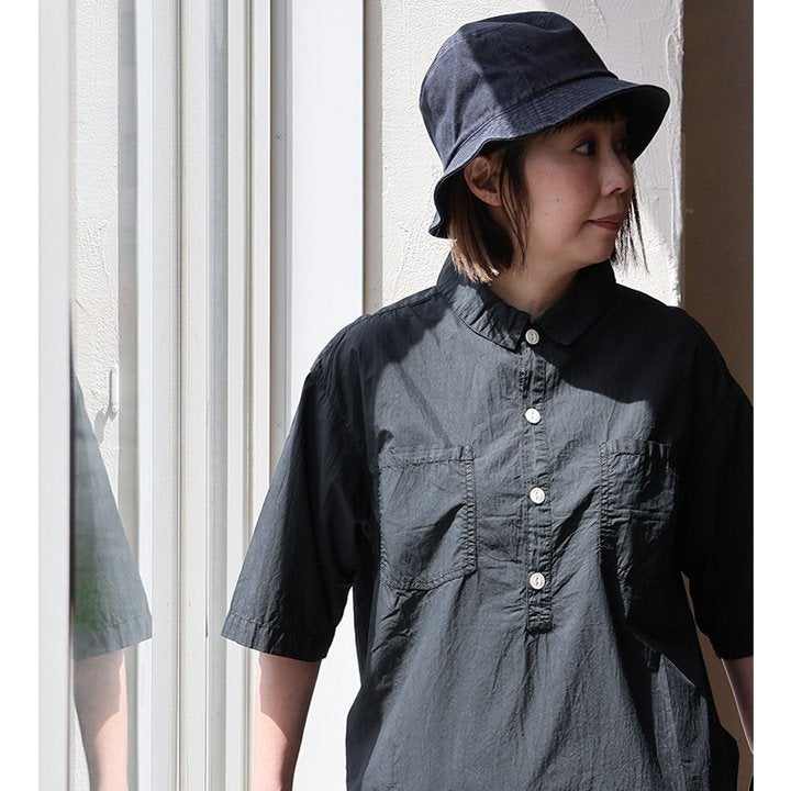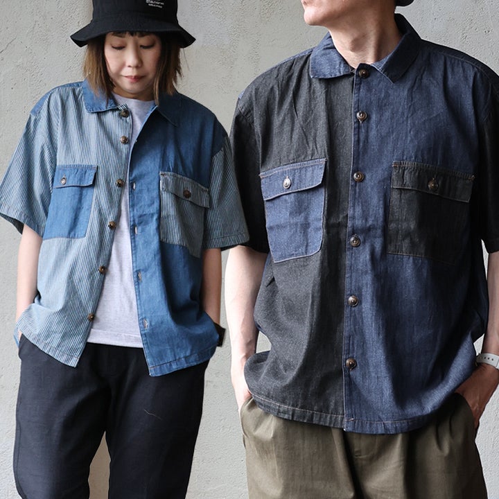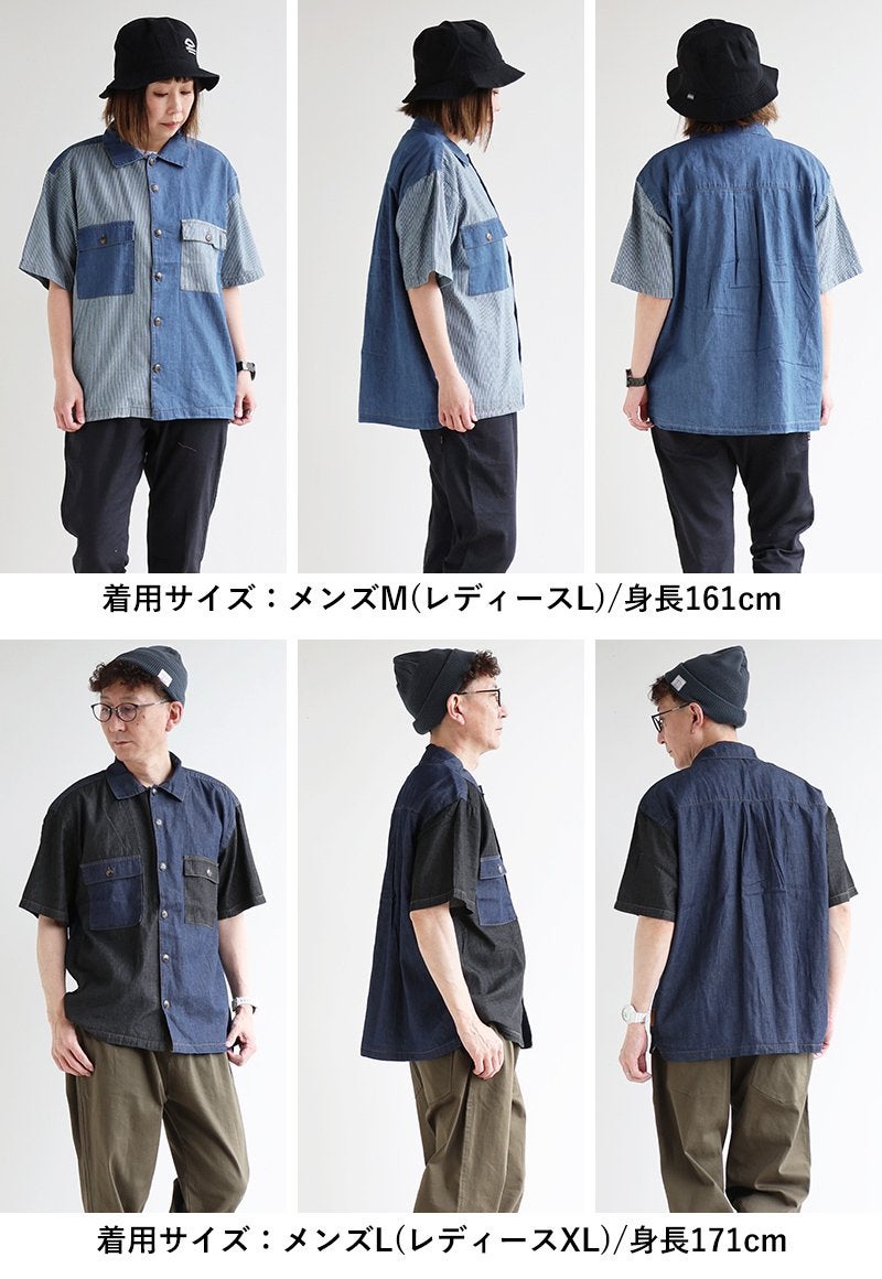 「落ち着き」と「個性」を引き立てる、安心な『ゆるさ』。 シャツ 6分袖 レディース バンドカラー 無地 綿100 コットン ワイド 大きいサイズ 体型カバー 二の腕カバー 配色 デニム ブラック 軽い 薄手 通気性 涼しい カジュアル パティ