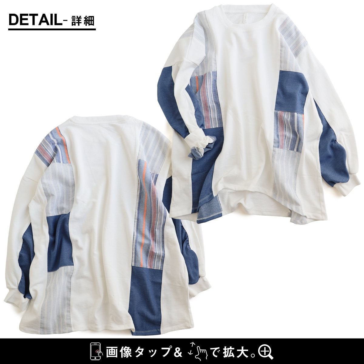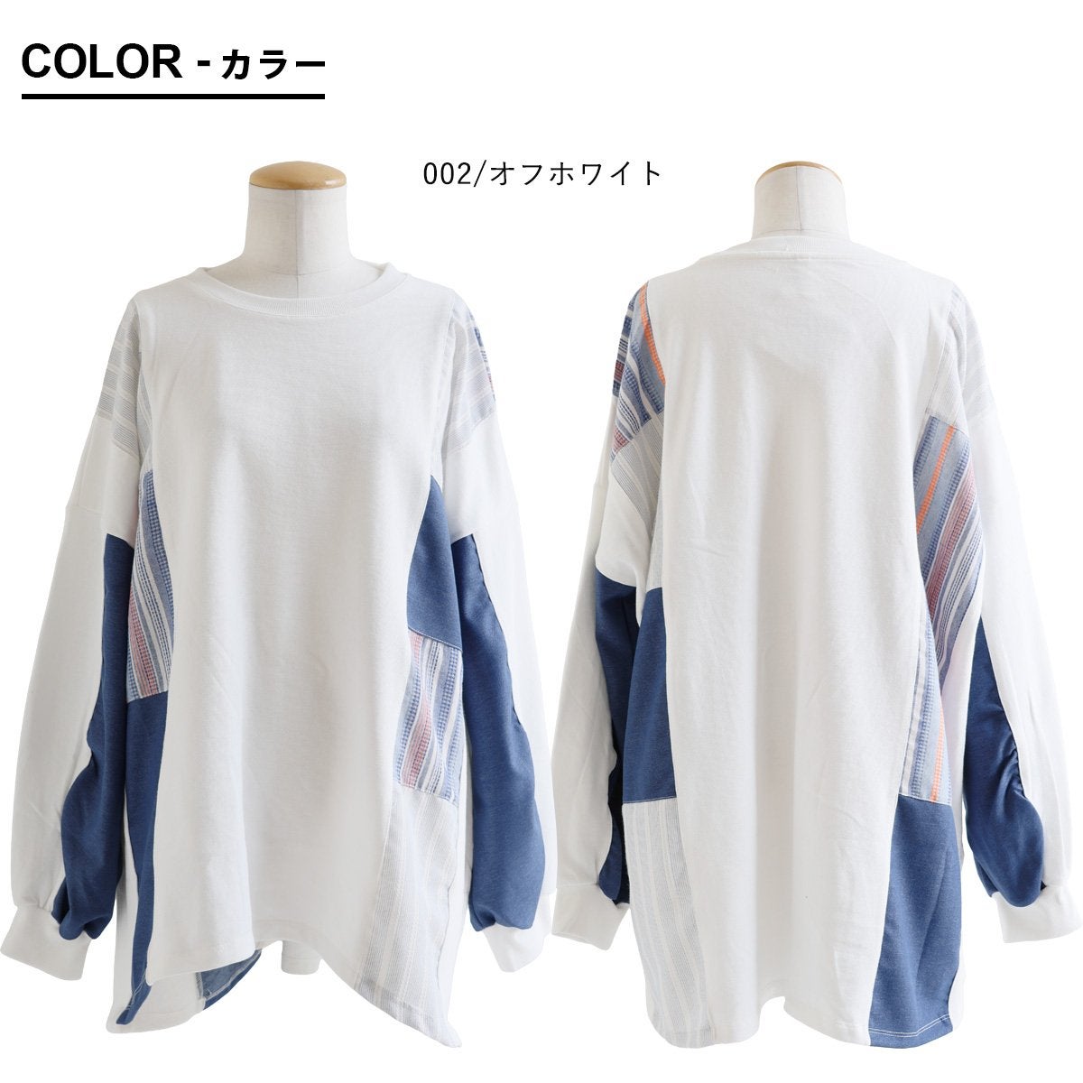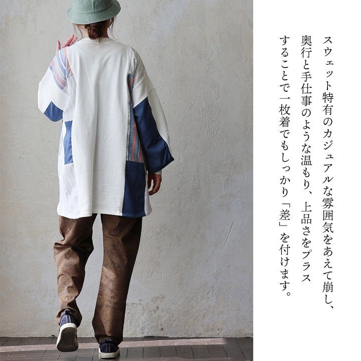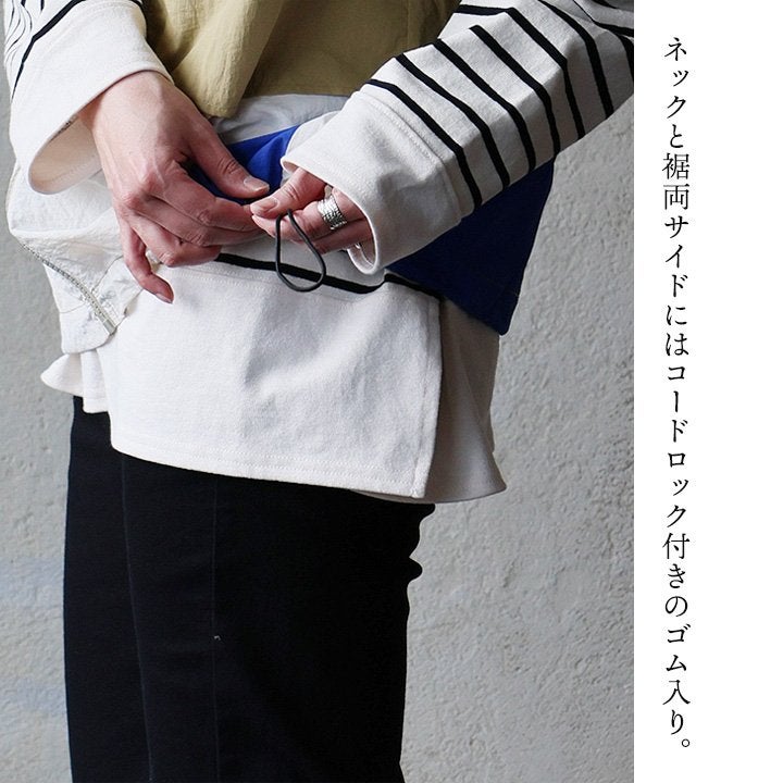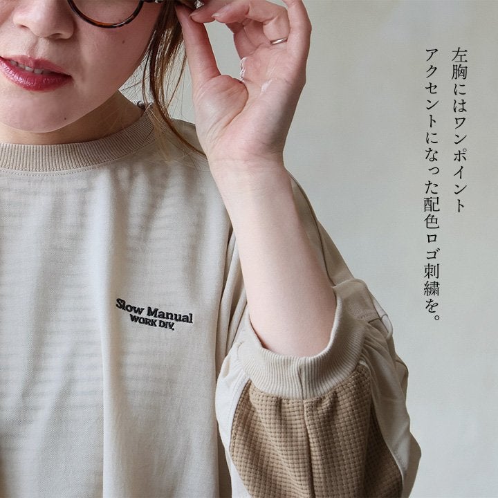 着痩せ重視に見せない、「奥行と手仕事のような温もり、上品さ」。 チュニック 長袖 レディース クルーネック お尻隠れる 着痩せ スウェット 異素材切り替え 配色 ストライプ 綿100 コットン 裏毛 袖リブ 大きいサイズ 体型カバー カジュアル パティ