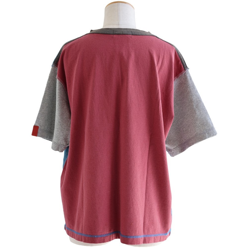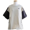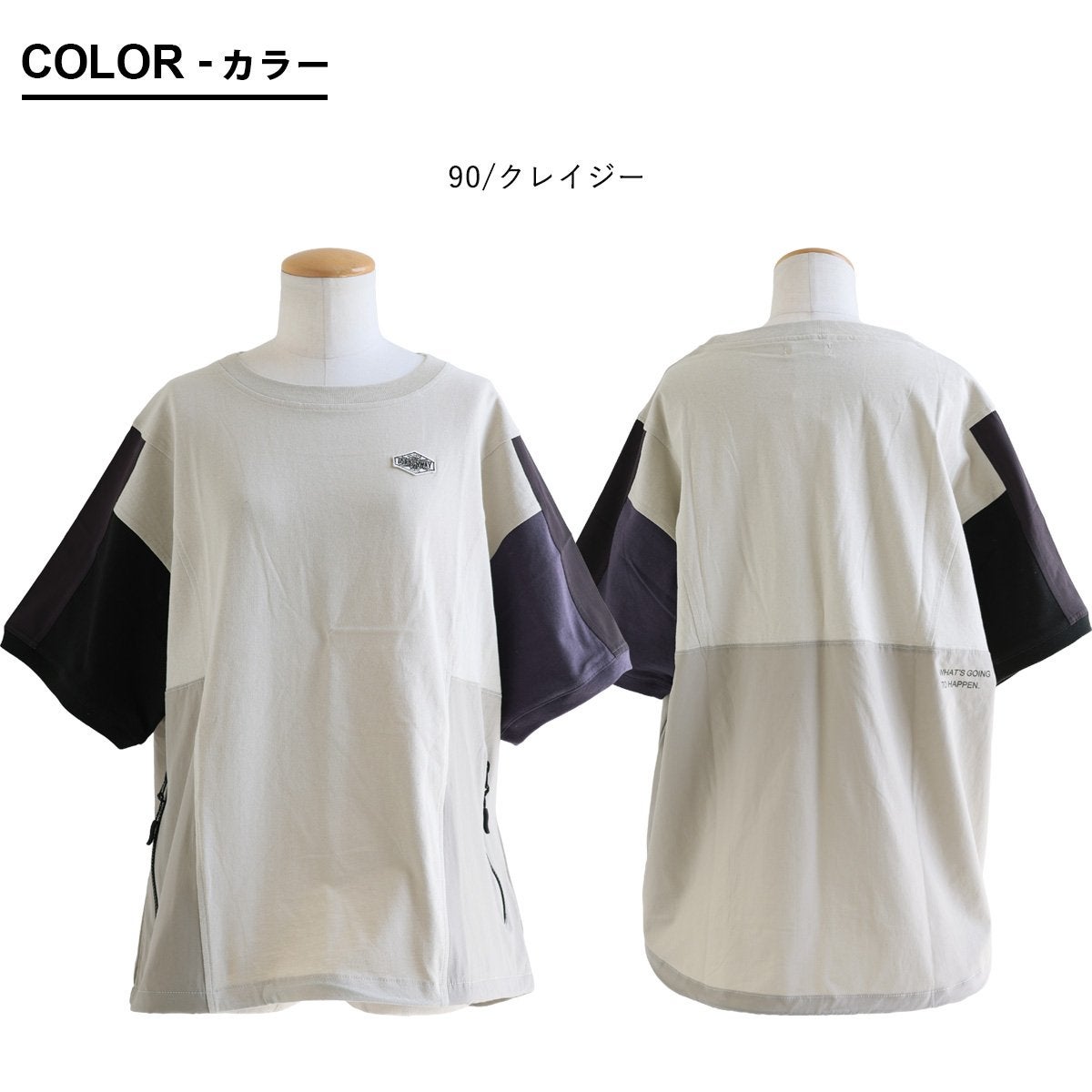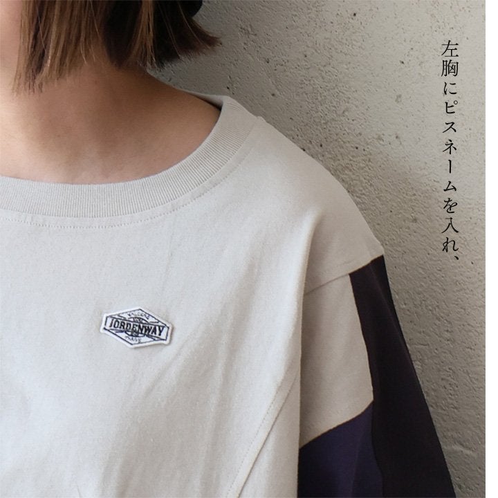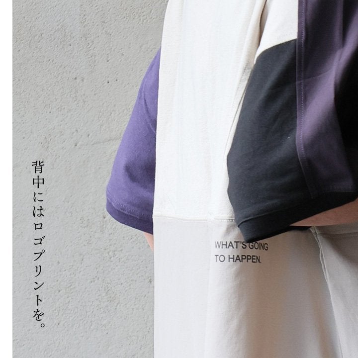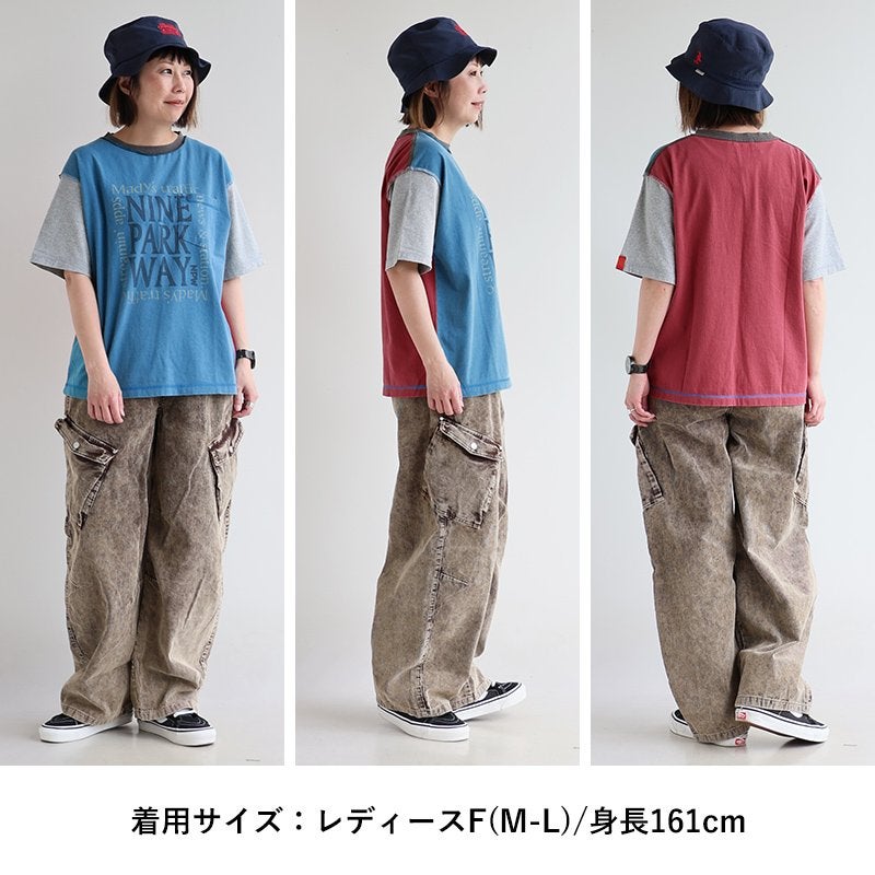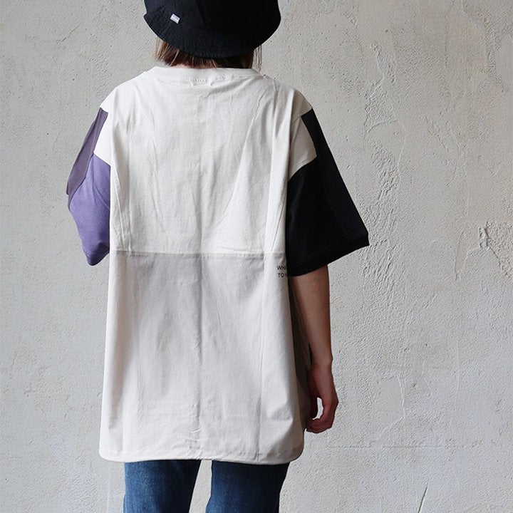 Tシャツ一枚着も、こんな自信に繋がる遊びがあったら。 【メール便50】 Tシャツ 5分袖 レディース クルーネック 配色 異素材切り替え クレイジー 綿 コットン ナイロン ストレッチ 薄手 軽い 涼しい ゆったり 大きいサイズ 体型カバー カジュアル 夏 レトロ パティ