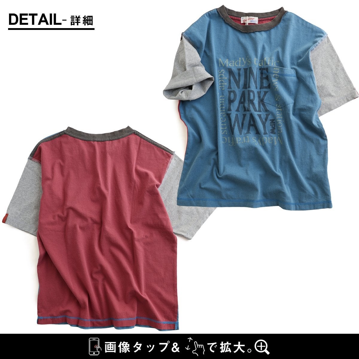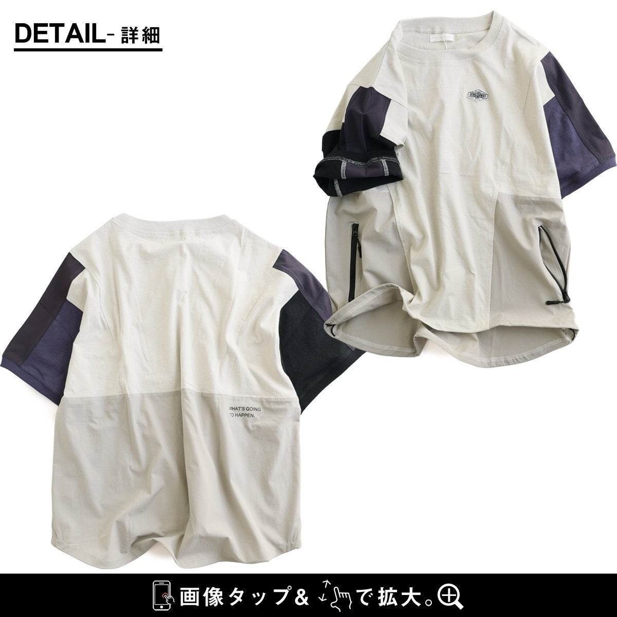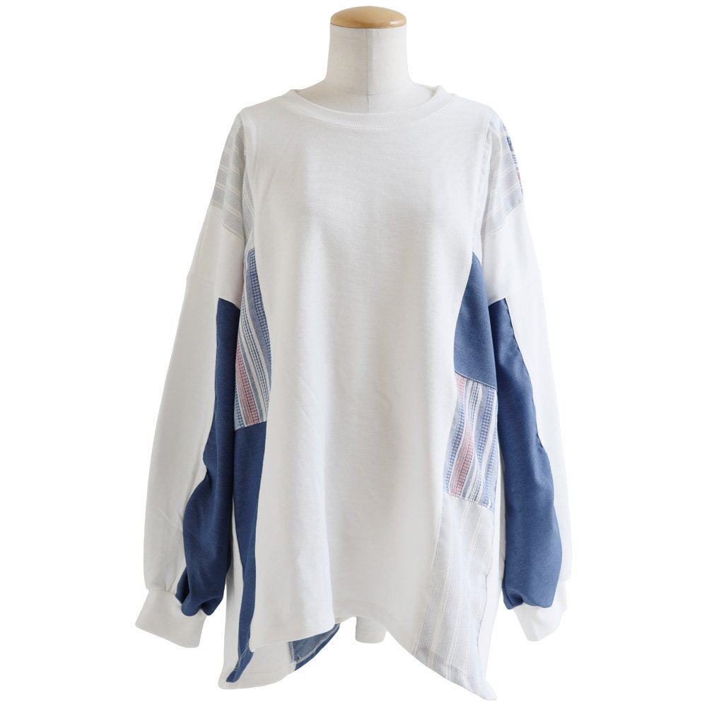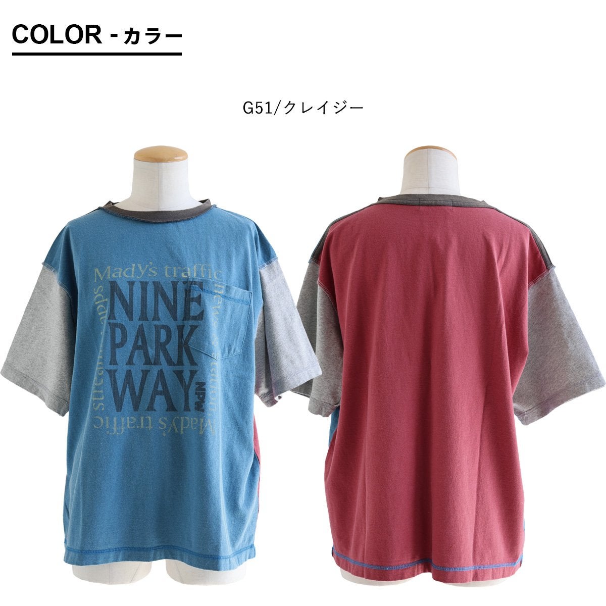 Tシャツ一枚着も、こんな自信に繋がる遊びがあったら。 【メール便50】 Tシャツ 5分袖 レディース クルーネック 配色 異素材切り替え クレイジー 綿 コットン ナイロン ストレッチ 薄手 軽い 涼しい ゆったり 大きいサイズ 体型カバー カジュアル 夏 レトロ パティ