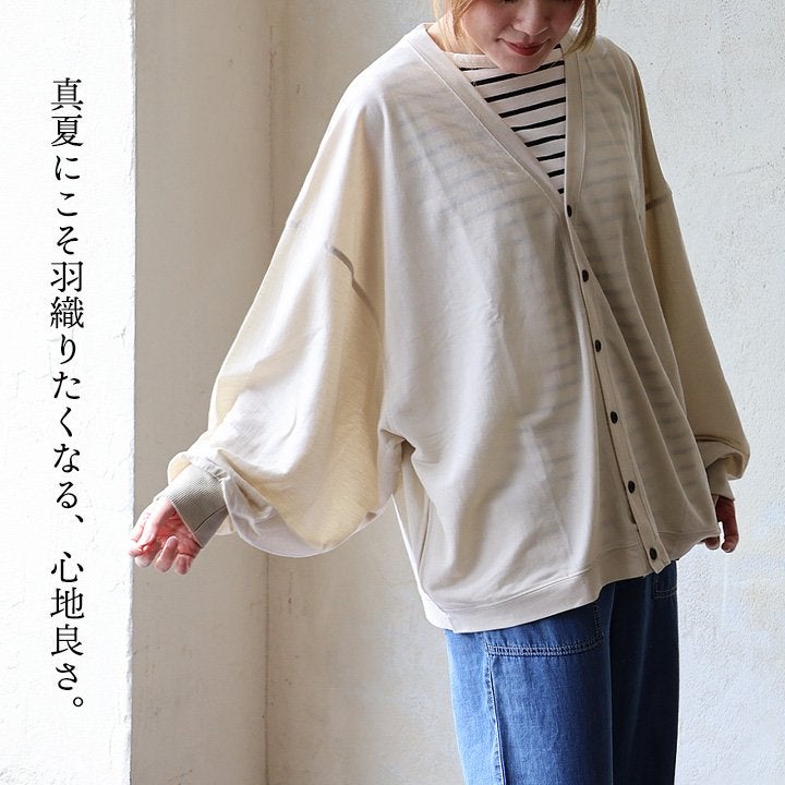 真夏にこそ羽織りたくなる、心地良さ。 カーディガン 長袖 レディース Vネック 無地 接触冷感 ひんやり 涼しい 冷たい 軽い ゆったり 大きいサイズ 体型カバー カジュアル 夏 パティ