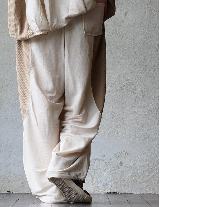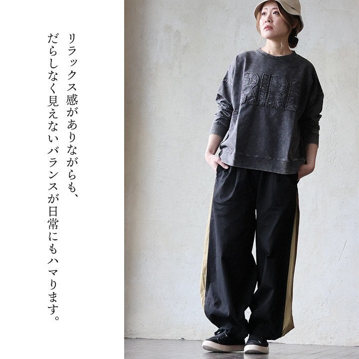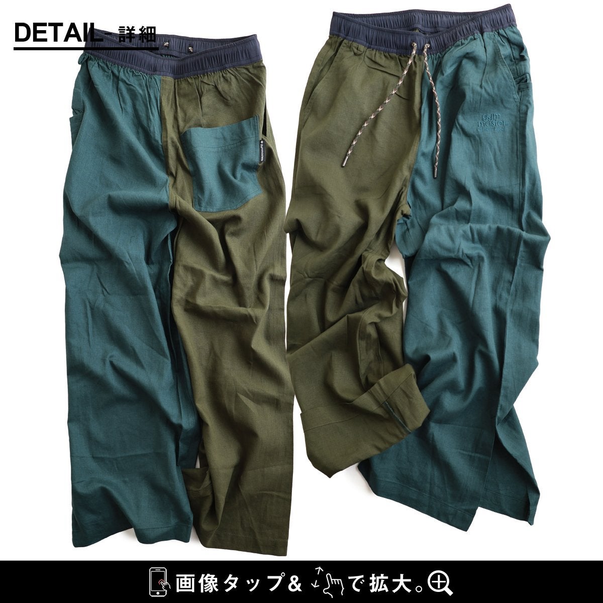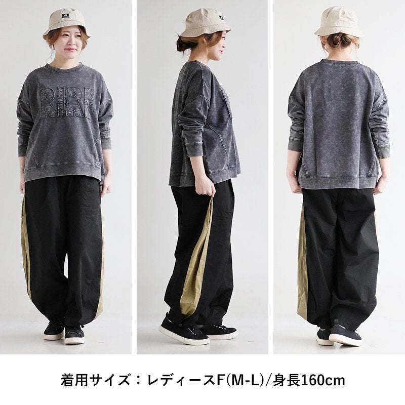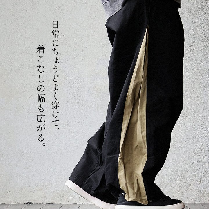 涼しく、軽く、暑い夏を盛り上げる。 gym master ジムマスター パンツ ワイドパンツ レディース 配色 麻 レーヨン 薄手 涼しい 軽い 通気性 楽ちん 裾スリット ウエストゴム ゆったり 大きいサイズ 体型カバー カジュアル レトロ クレイジー 夏 パティ