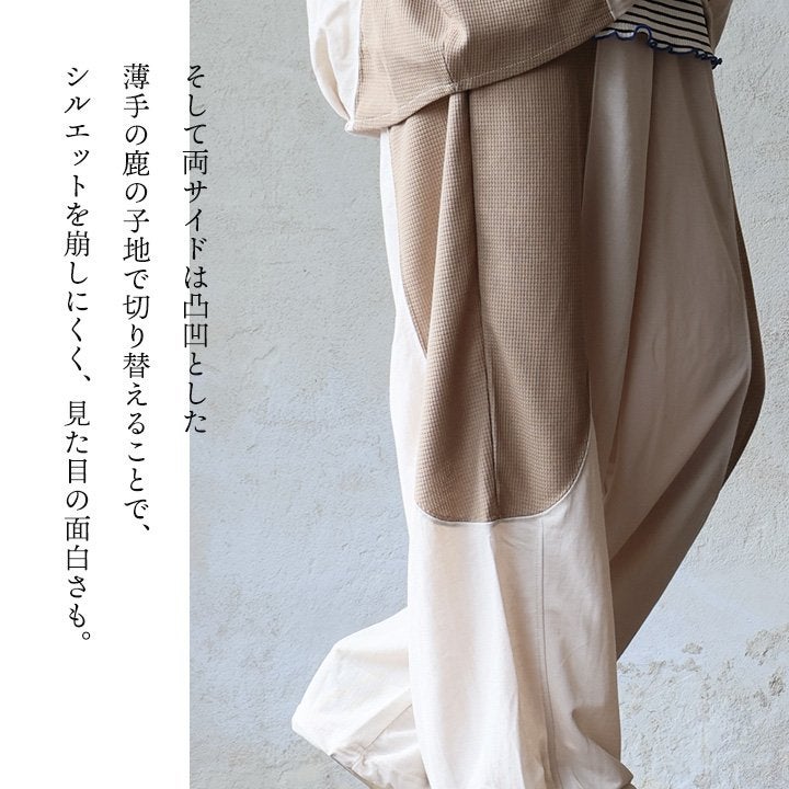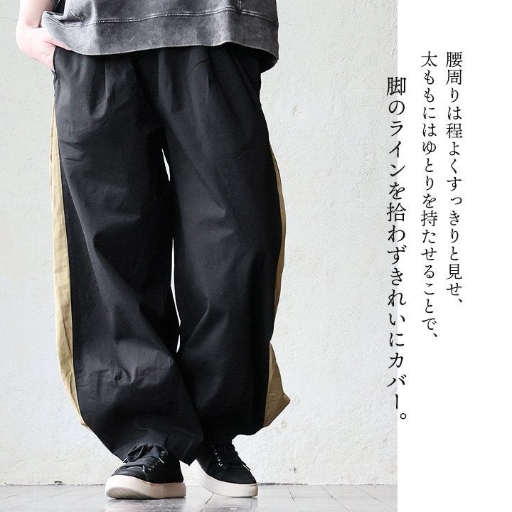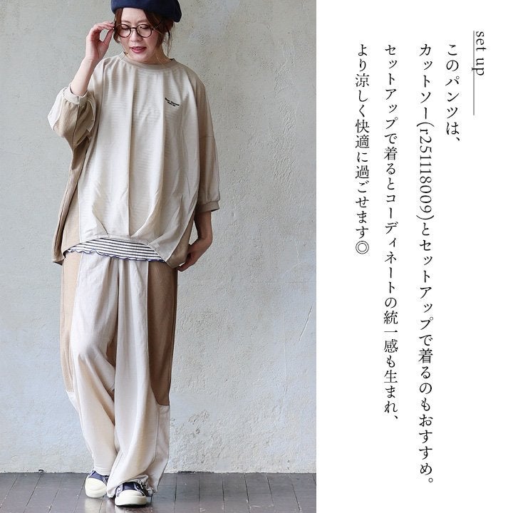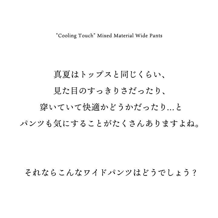「想像以上」の楽ちんさ、カバー力、穿き心地。 ワイドパンツ ストレート レディース 接触冷感 涼しい ひんやり 軽い 異素材切り替え ウエストゴム ゆったり 大きいサイズ 体型カバー カジュアル 夏 パティ