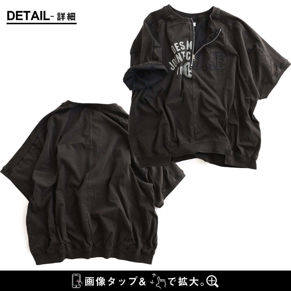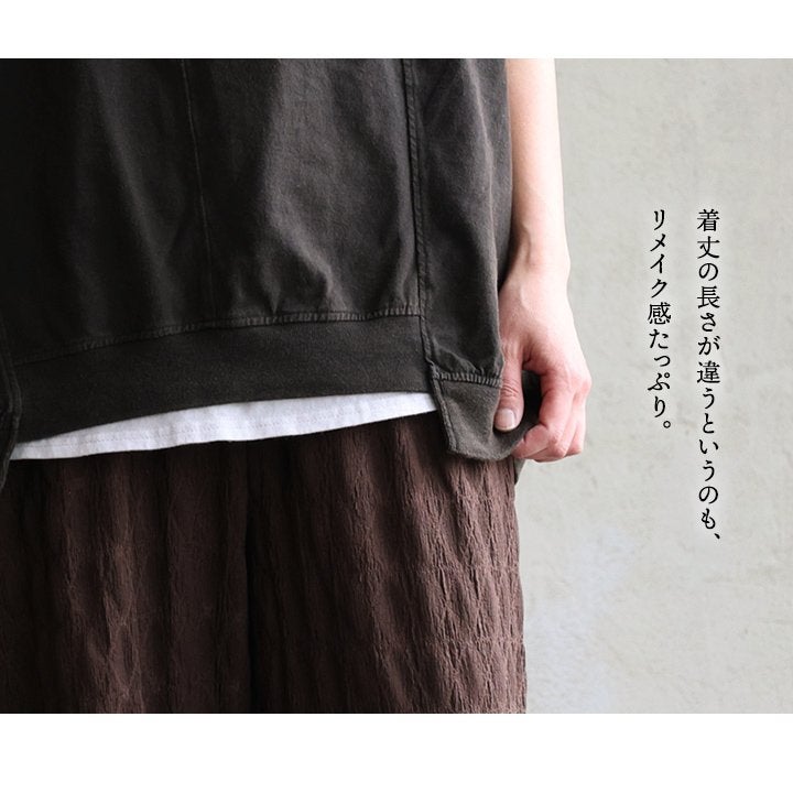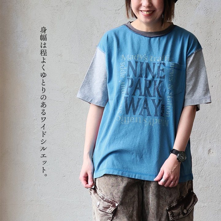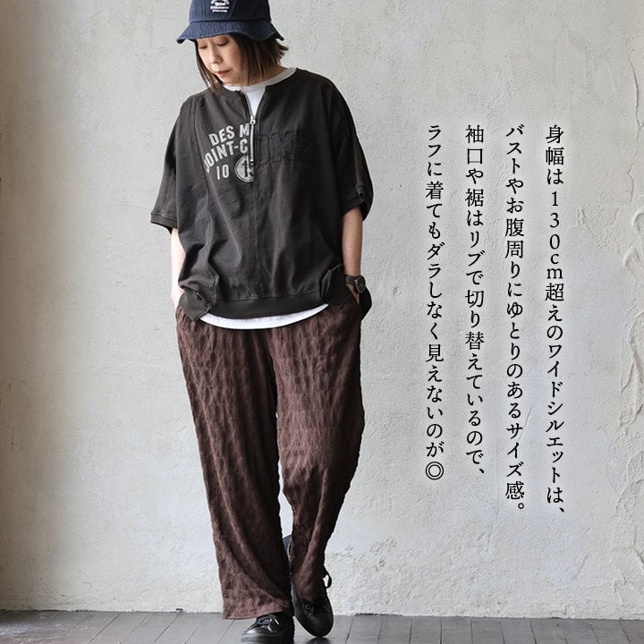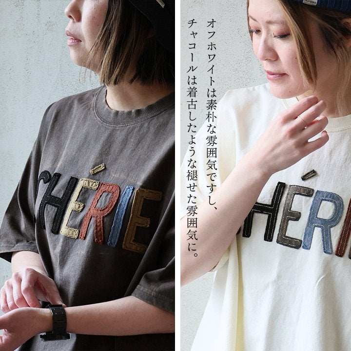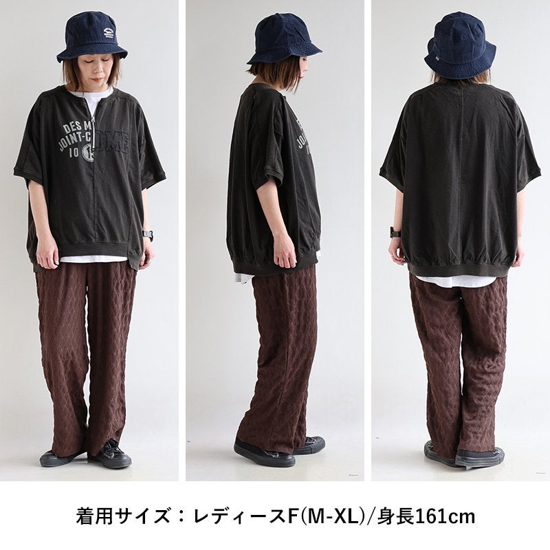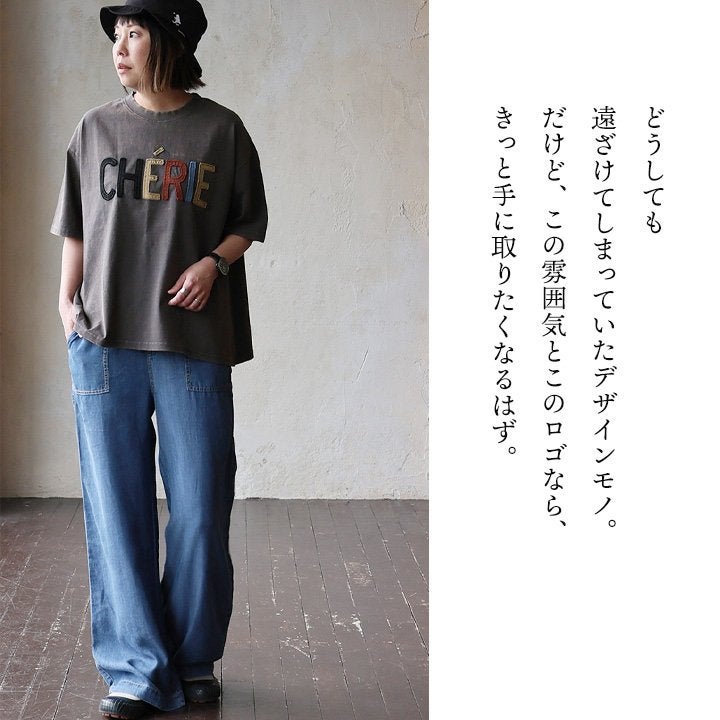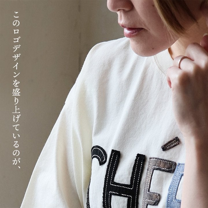 一点モノような存在を、日常着に。 Tシャツ 5分袖 レディース ハーフジップ 綿100 コットン 天竺 しっかり生地 褪せ色 リメイク ロゴプリント 大きいサイズ 体型カバー 重ね着 カジュアル レトロ 夏 パティ