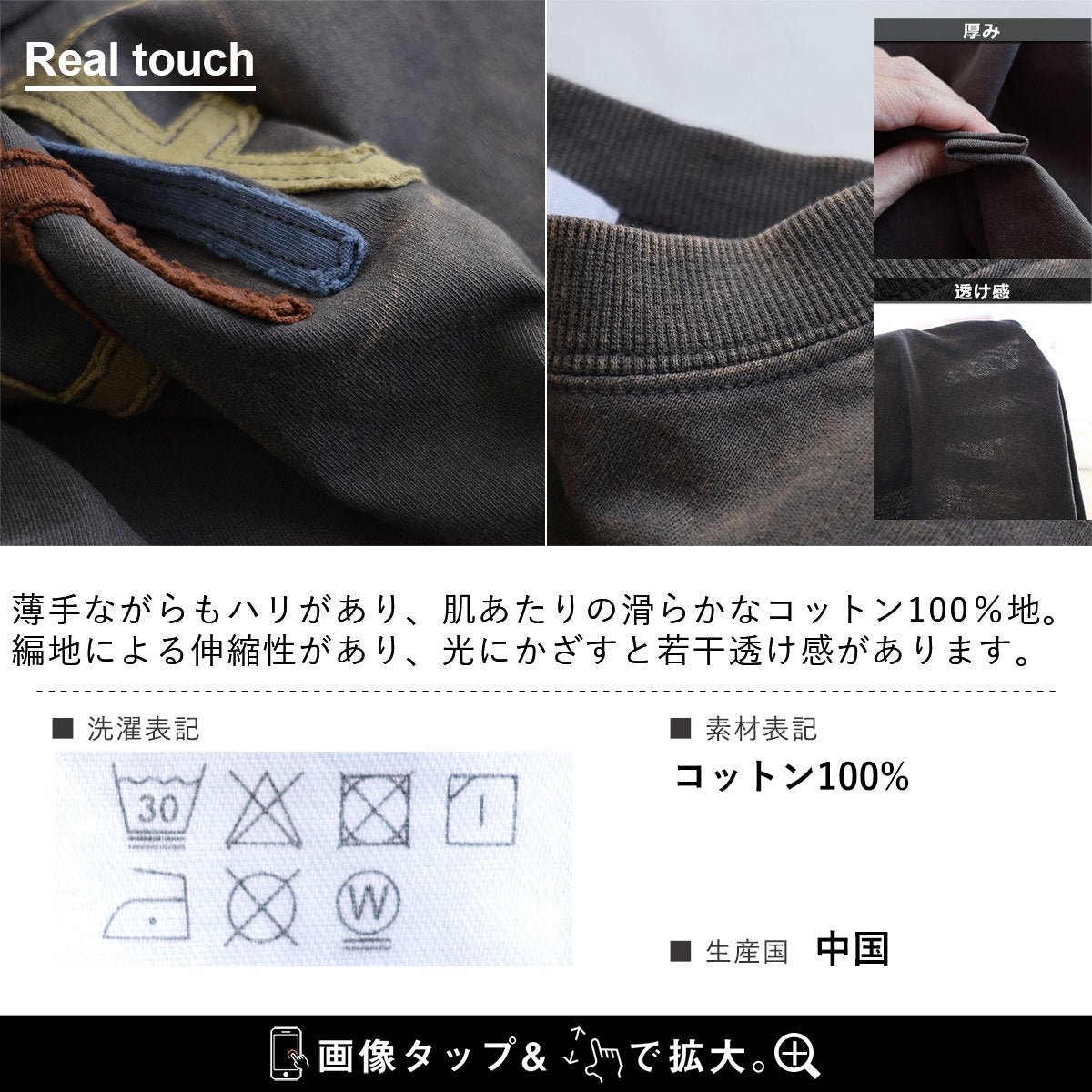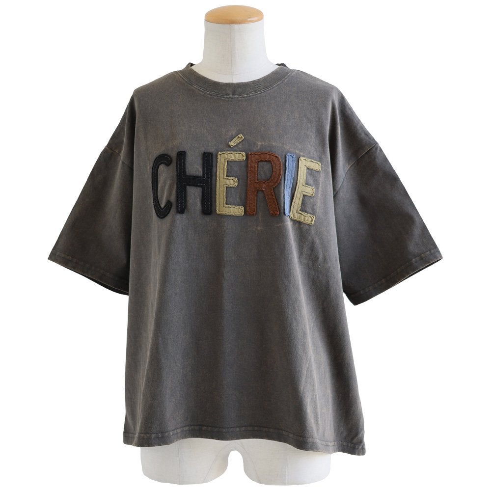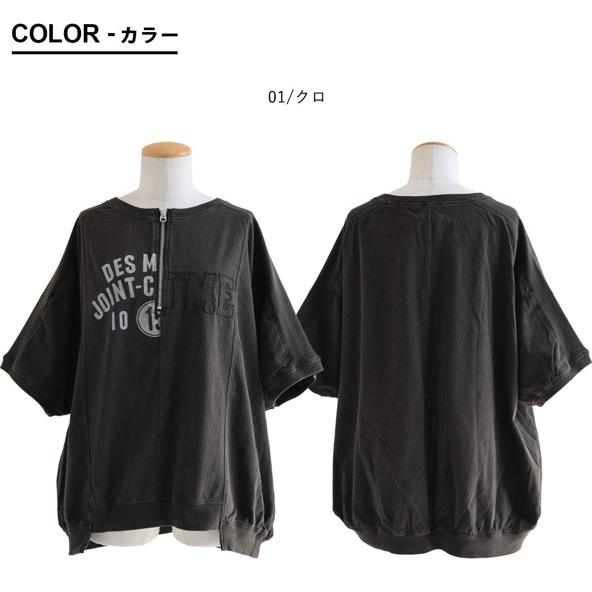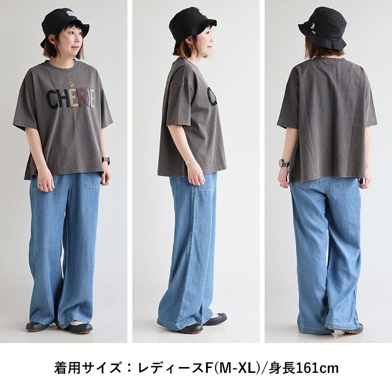 一点モノような存在を、日常着に。 Tシャツ 5分袖 レディース ハーフジップ 綿100 コットン 天竺 しっかり生地 褪せ色 リメイク ロゴプリント 大きいサイズ 体型カバー 重ね着 カジュアル レトロ 夏 パティ