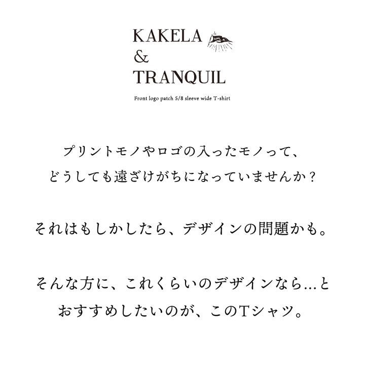 この雰囲気、このロゴなら。 【メール便50】 KAKELA&TRANQUIL カケラ&トランクイル Tシャツ 5分袖 レディース クルーネック ロゴ 刺繍 ワッペン 配色 綿100 コットン 天竺 伸縮性 薄手 軽い 通気性 涼しい ゆったり 大きいサイズ 体型カバー カジュアル 夏 パティ