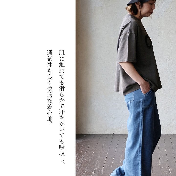 着る人にも、見る人にも、解釈を委ねる「月」。 KAKELA&TRANQUIL カケラ&トランクイル Tシャツ 5分袖 レディース クルーネック ロゴプリント 刺繍 月 インクジェット 綿100 コットン 伸縮性 ハリ 通気性 涼しい ゆったり 大きいサイズ 体型カバー カジュアル 夏 パティ