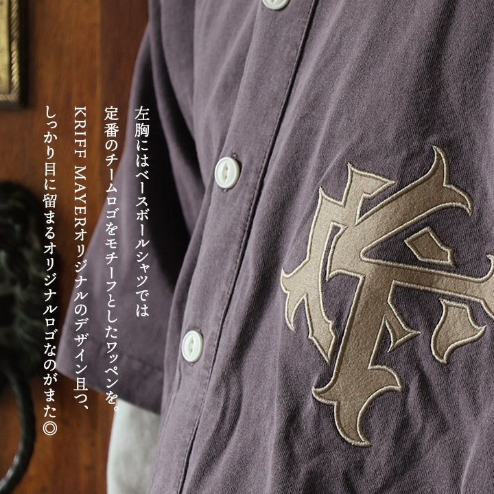 Tシャツ感覚で着られる、ベースボールシャツ。 KRIFF MAYER クリフメイヤー ベースボールシャツ シャツ 5分袖 メンズ レディース 綿100 コットン 褪せ色 ピグメント ワッペン 柔らか 通気性 重ね着 ゆったり 大きいサイズ 体型カバー カジュアル 夏 パティ