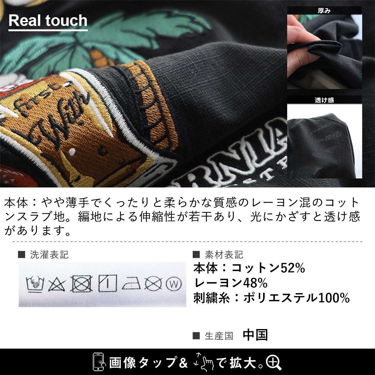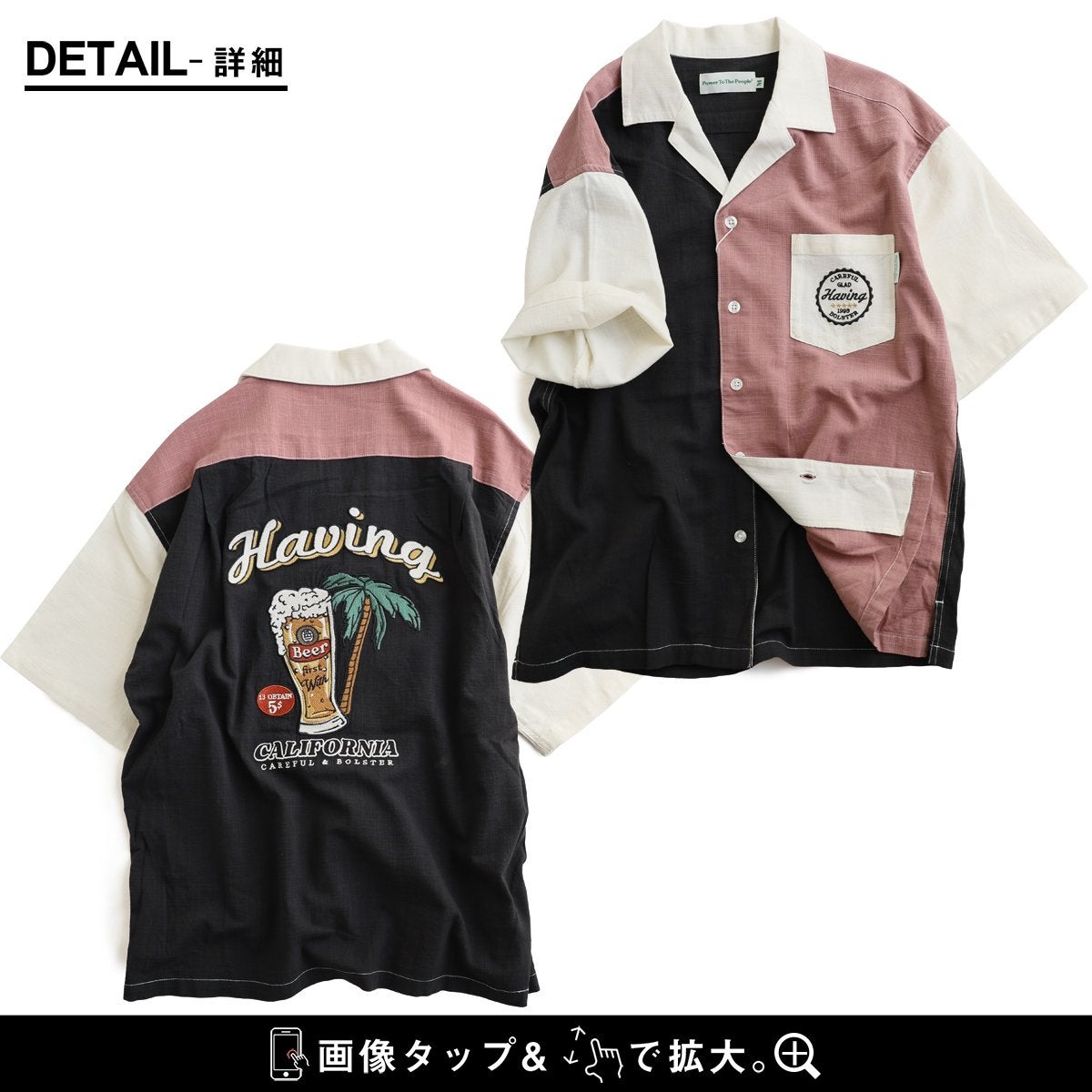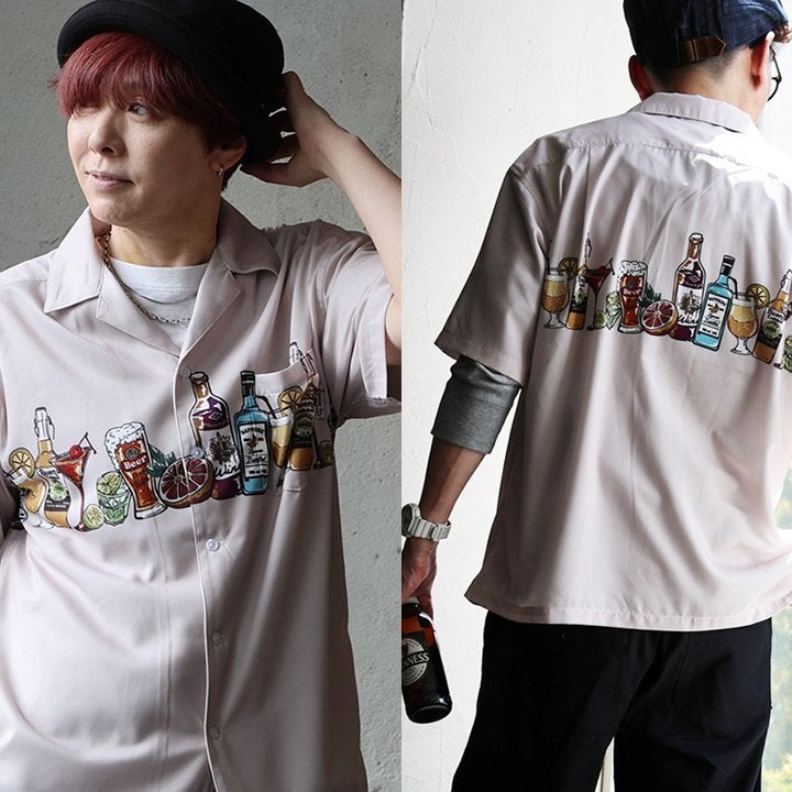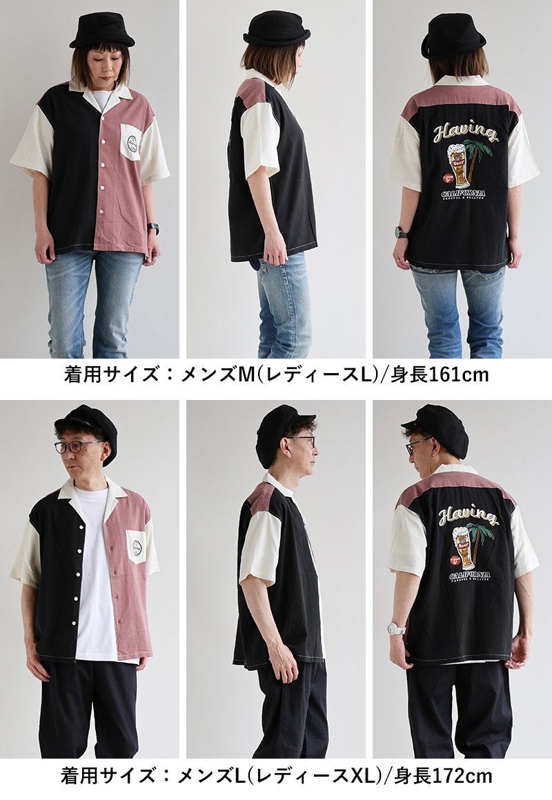 視線を奪う¨遊び心¨を大人が着るからこそ、映えるシャツに。 シャツ 5分袖 メンズ レディース 開襟シャツ 配色 バック刺繍 ロゴ コットン レーヨン スラブ 薄手 涼しい 軽い 大きいサイズ 体型カバー カジュアル 夏 パティ