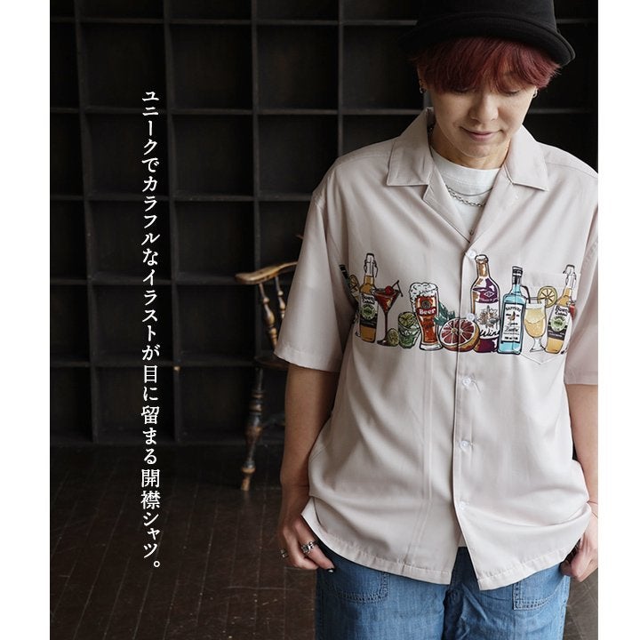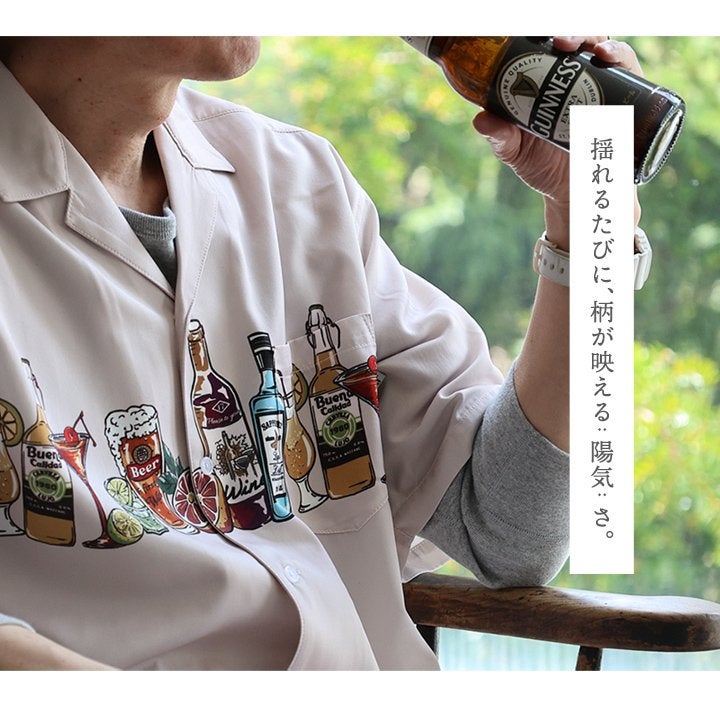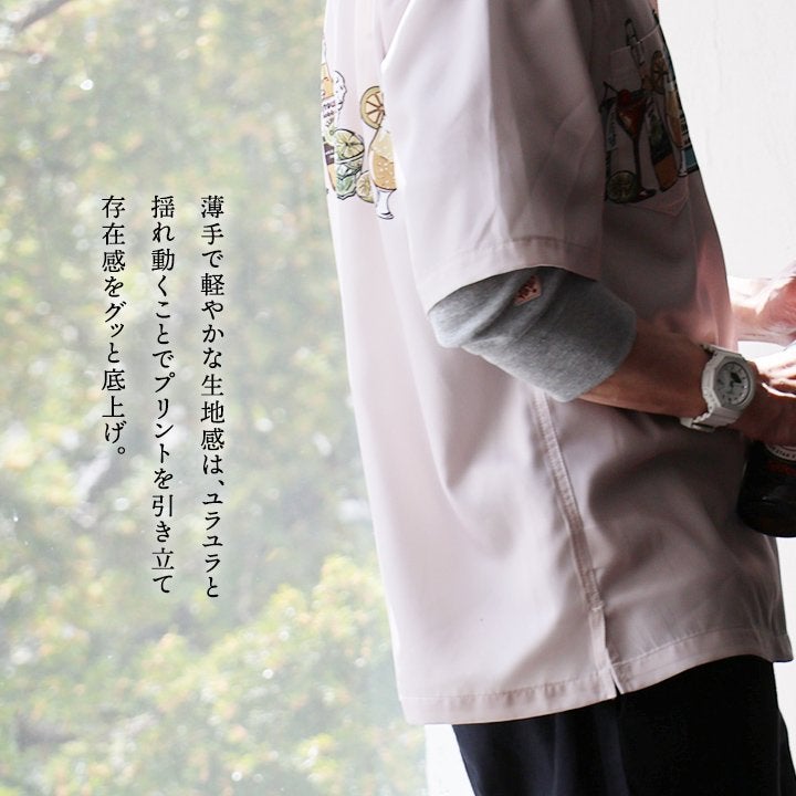 揺れるたびに、柄が映える¨陽気¨さ。 シャツ 開襟シャツ 半袖 メンズ レディース 薄手 プリント 軽い 涼しい 重ね着 大きいサイズ 体型カバー カジュアル 夏 パティ