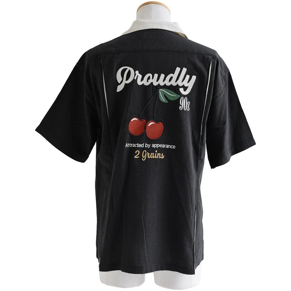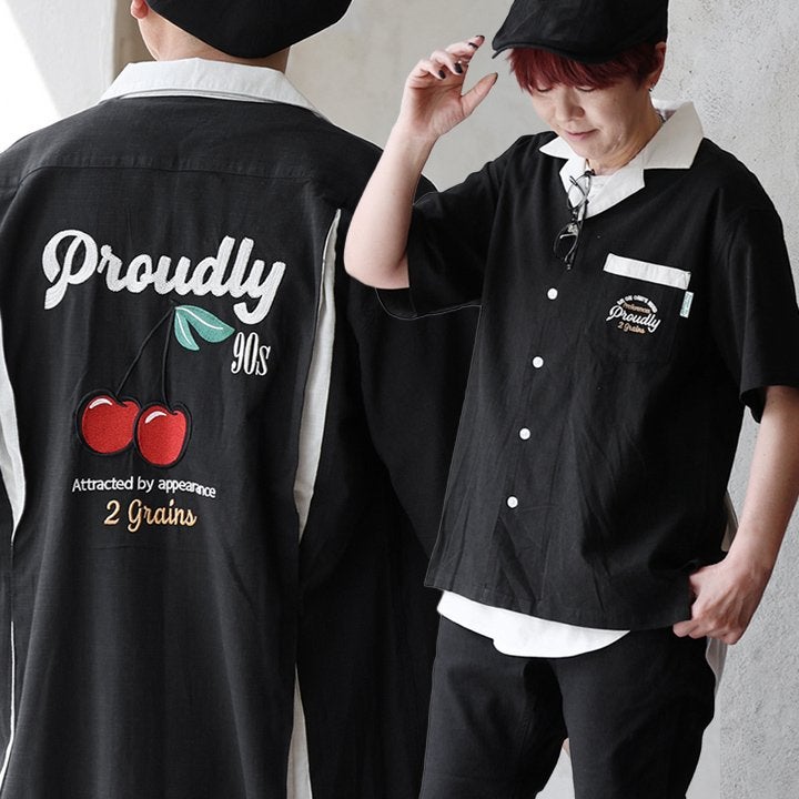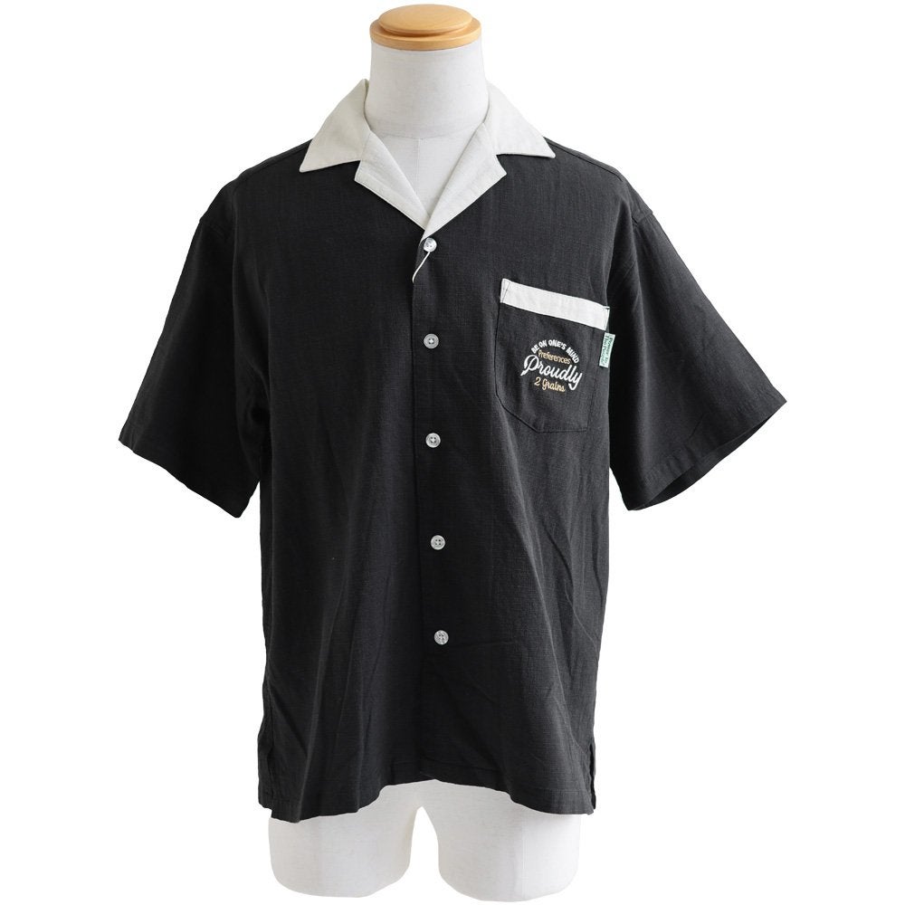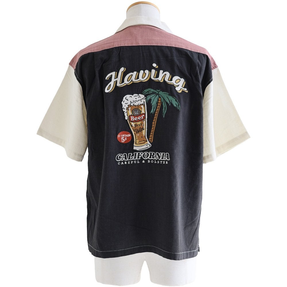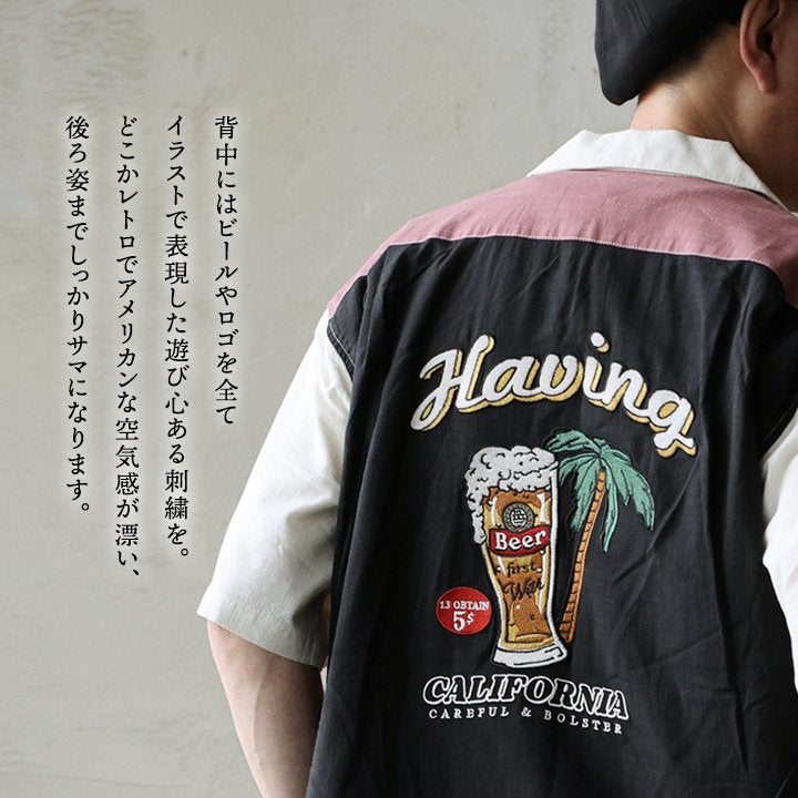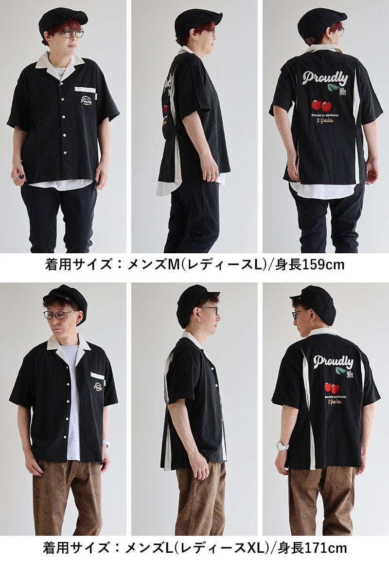 真夏でもさらっと涼しい、ボウリングシャツ。 ボウリングシャツ シャツ 5分袖 メンズ レディース 配色 チェーンステッチ 刺繍 配色 コットン レーヨン スラブ天竺 薄手 軽い 伸縮性 涼しい カジュアル 夏 パティ
