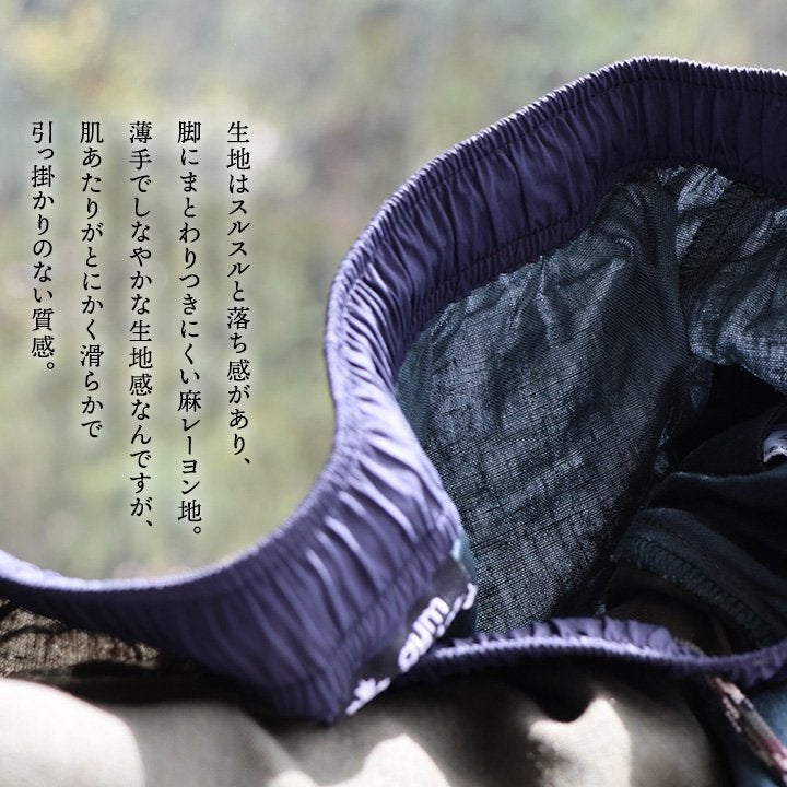 素朴な素材感で、気になるレッグラインにも安心感。 レギンス スパッツ 12分丈 ウエストゆったり リネン混 綿麻 ナイロン ポリエステル 日本製 国産 レディース M L チャコールグレー ブラック ネイビー おしゃれ PATY SMALL STONE SOCKS スモールストーンソックス