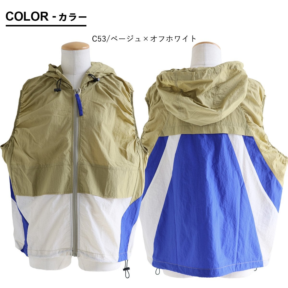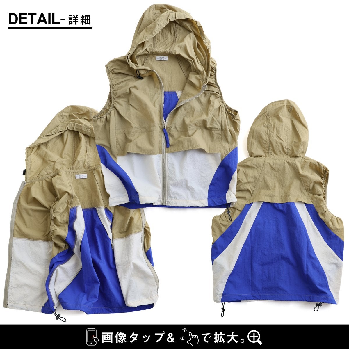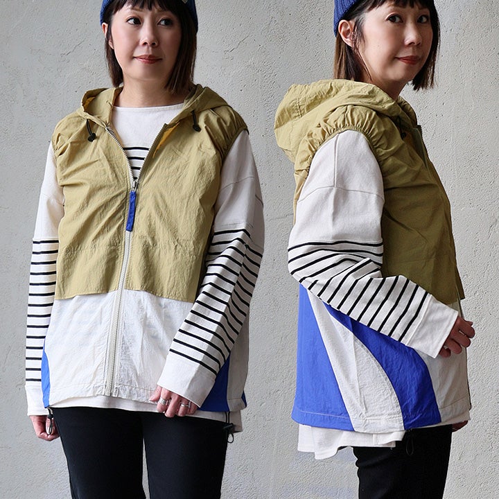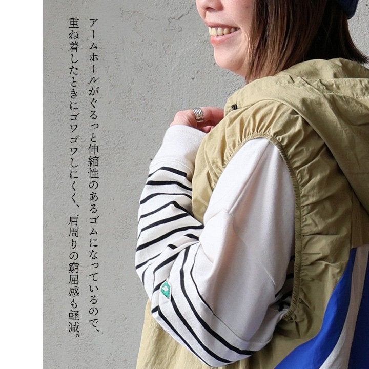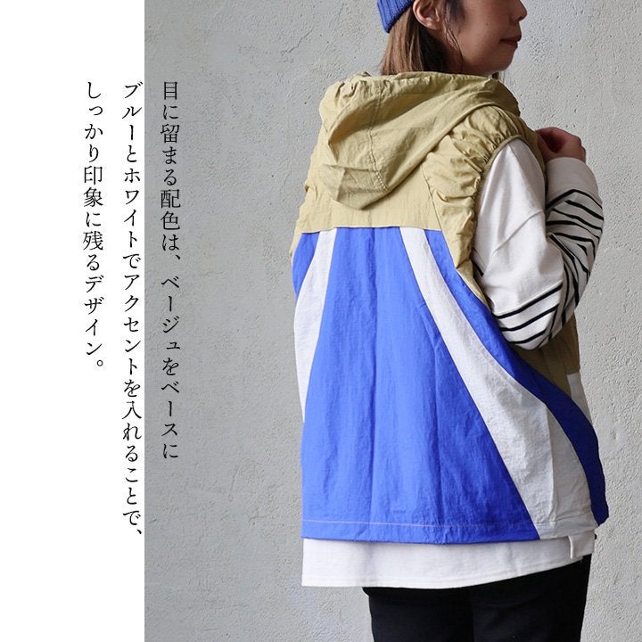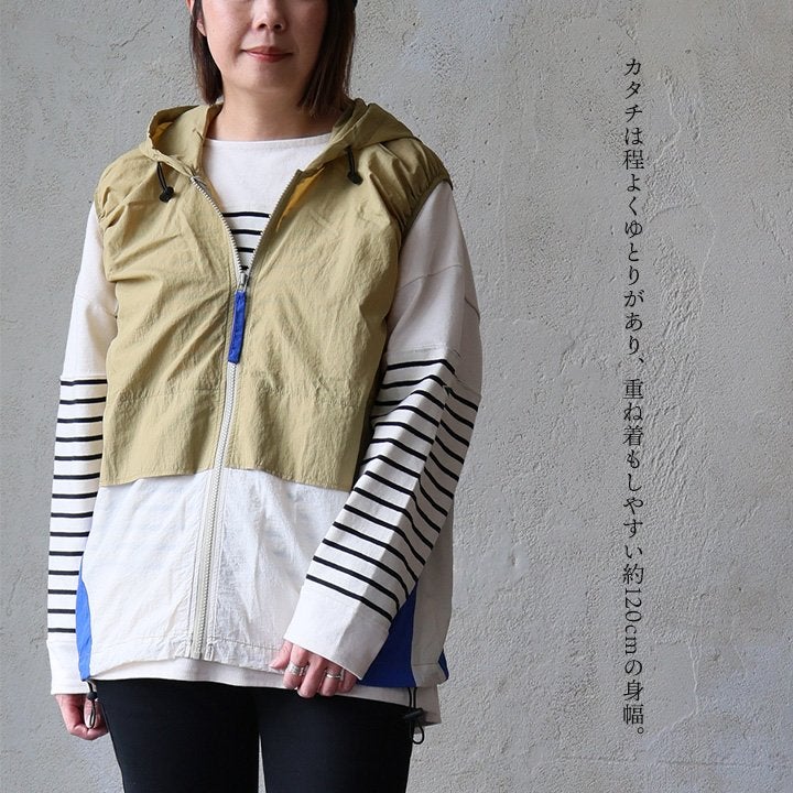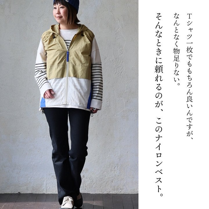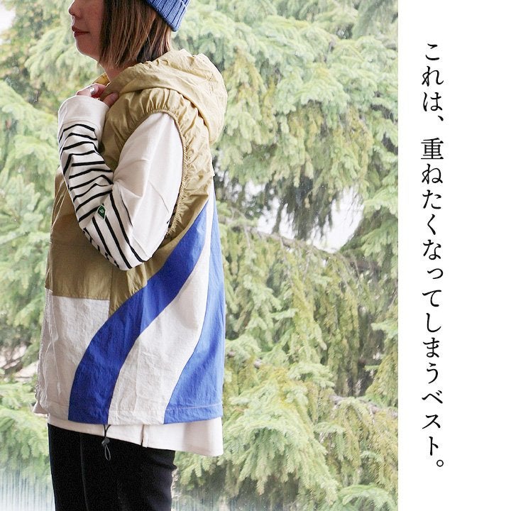 これは、重ねたくなってしまうベスト。 ベストレ ジップベスト ディース クレイジー 配色 ナイロン 薄手 軽い 重ね着 コードロック 大きいサイズ 体型カバー カジュアル レトロ 夏 パティ GENTIL ジャンティ