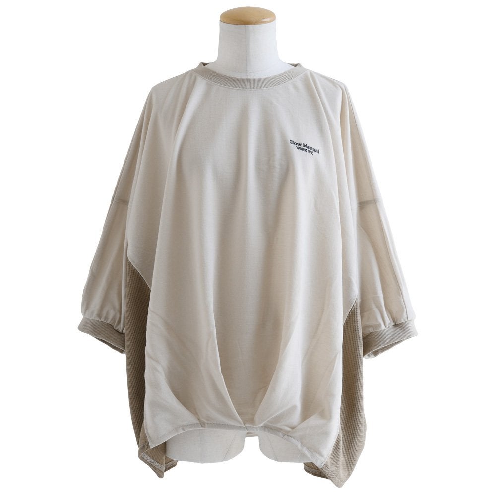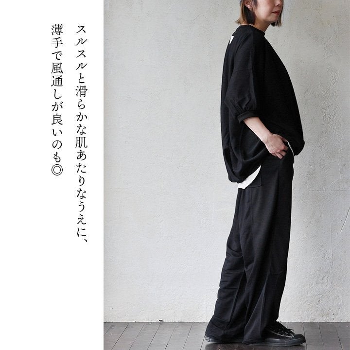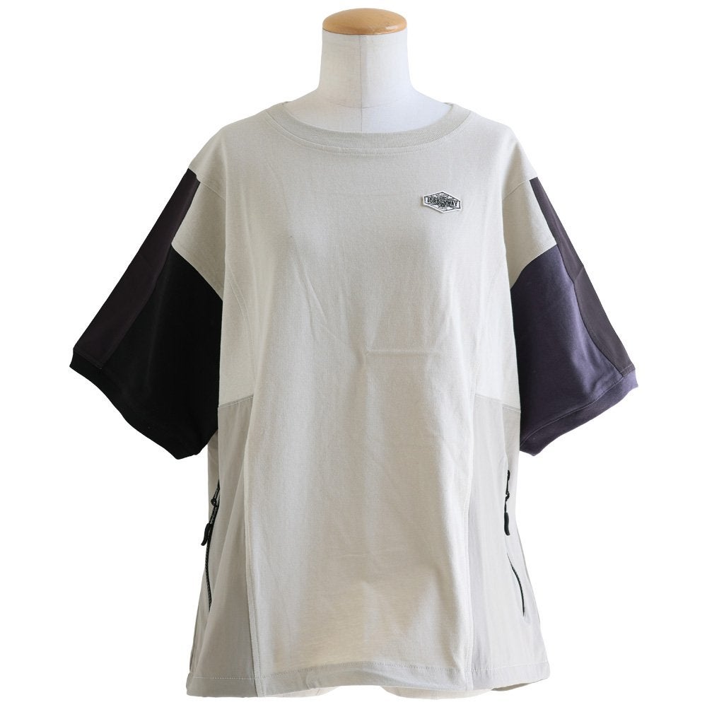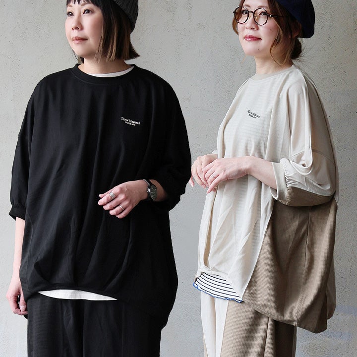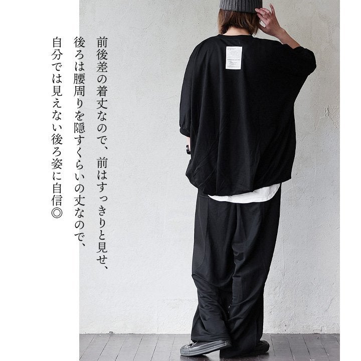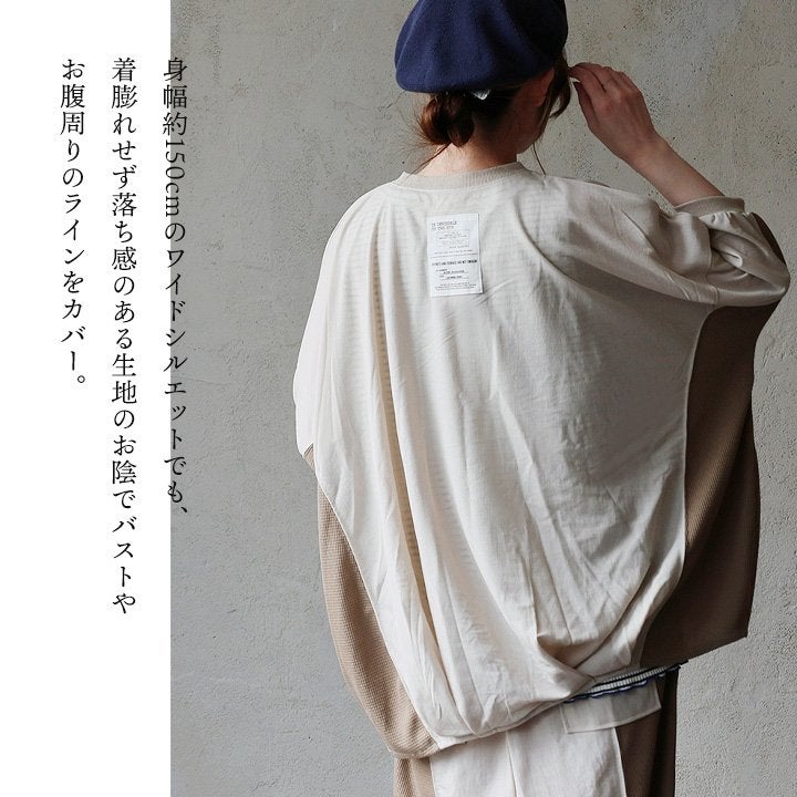 見た目はゆるく、着心地は想像以上。 カットソー 5分袖 クルーネック 接触冷感 ひんやり 涼しい 異素材切り替え 薄手 軽い 袖リブ ゆったり 大きいサイズ 体型カバー カジュアル 夏 パティ