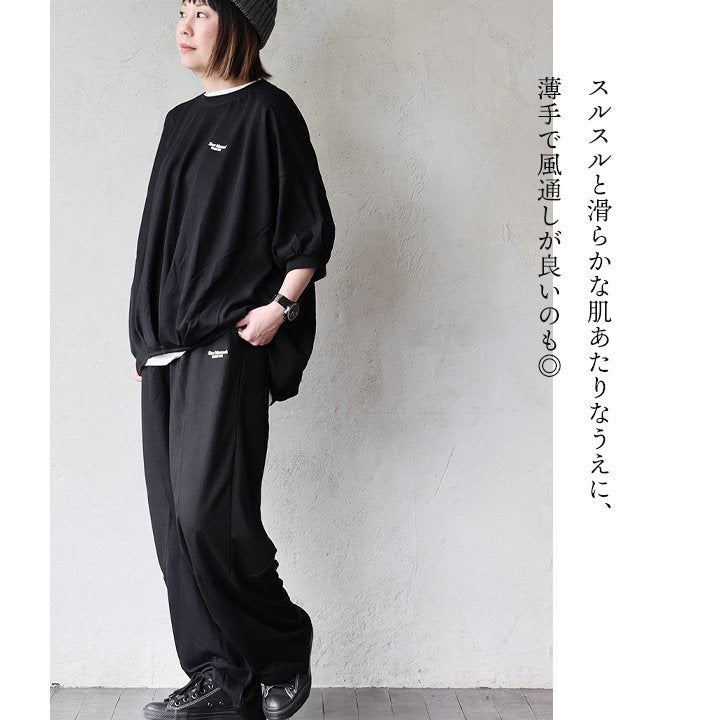 頑張らなくても、一枚着がサマになる。 【メール便50】 KAKELA&TRANQUIL カケラ&トランクイル Tシャツ 5分袖 レディース クルーネック 配色 ロゴ刺繍 綿100 コットン 薄手 通気性 涼しい ゆったり 大きいサイズ 体型カバー カジュアル 夏 パティ