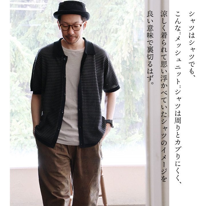 夏にも涼しく着られる¨メッシュニット¨シャツ。 gym master ジムマスター シャツ メッシュニットシャツ 5分袖 メンズ レディース 重ね着 ボーダー コットン ポリエステル 柔らかい 軽い 涼しい 通気性 チクチクしない 大きいサイズ カジュアル 夏 パティ