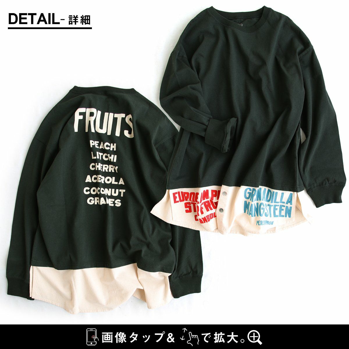 一枚で「重ね着」完成。 Tシャツ ロンT 長袖 レディース 重ね着 レイヤード風 お尻隠れる 体型カバー シャツ 無地 綿100% コットン リブ切り替え 薄手 体型カバー カジュアル