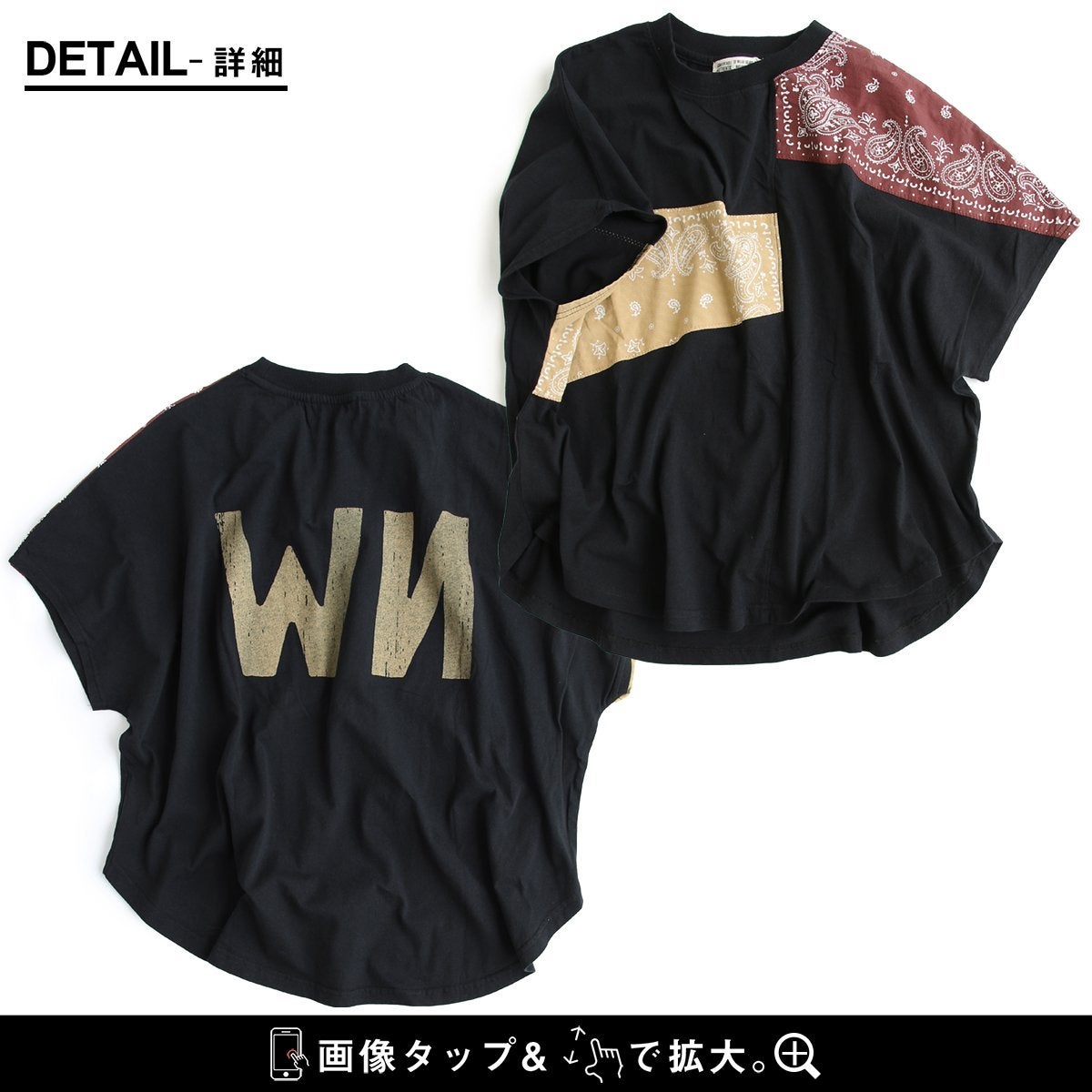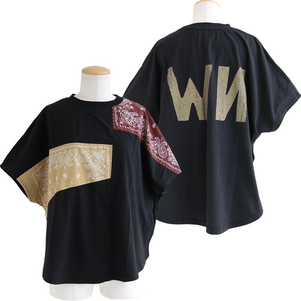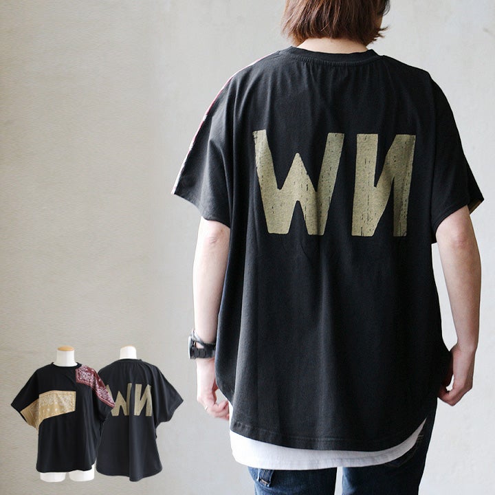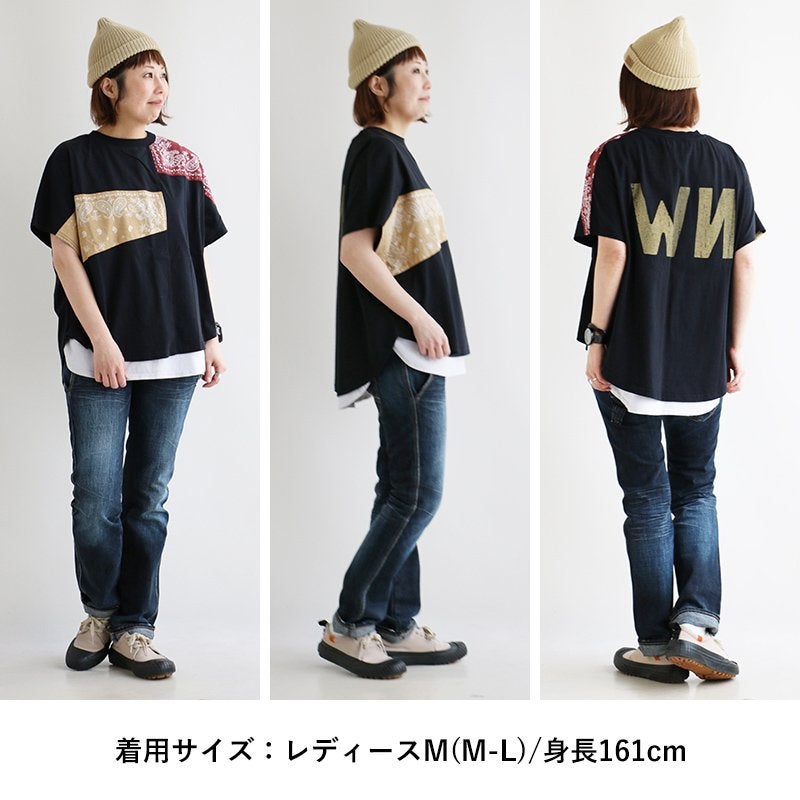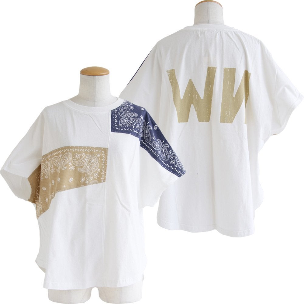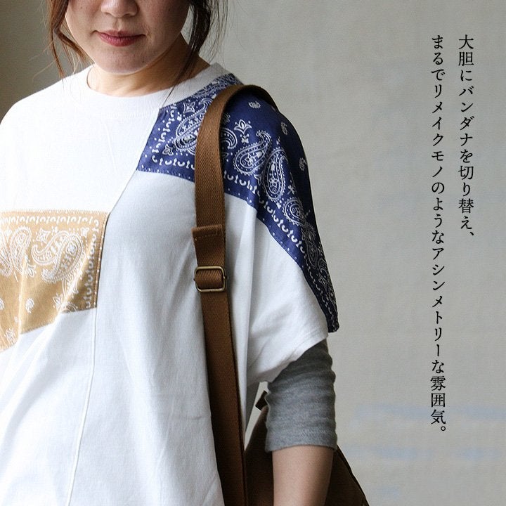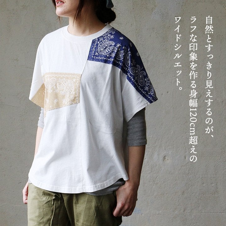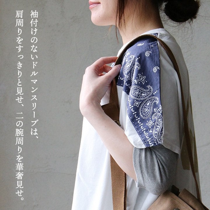 大人が個性を出すなら、これ。 Tシャツ 半袖 レディース クルーネック ラグラン 綿100 コットン ロゴ プリント バンダナ 切り替え 薄手 通気性 体型カバー カジュアル 夏 パティ CUBE SUGAR キューブシュガー