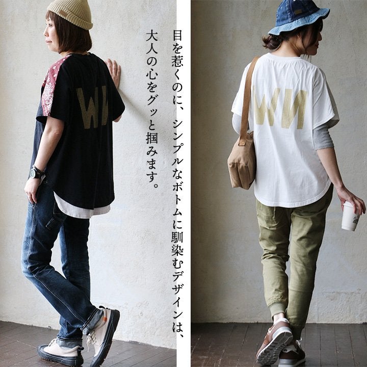 前も後ろも、これなら安心。 着痩せ すっきり tシャツ ワイド 5分袖 夏 レディース プリント 薄手 涼しい 綿100 コットン 二の腕 お尻 体型カバー カジュアル パティ KAKELA&TRANQUIL カケラ&トランクイル