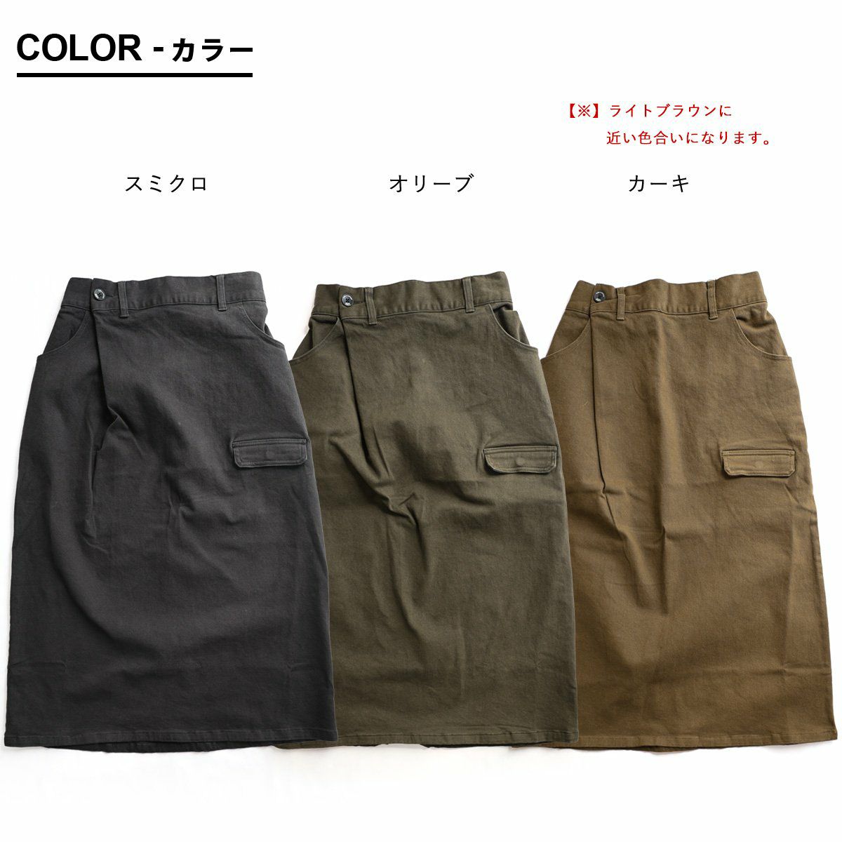 普段スカートを穿かないわたしが唯一穿ける、「動けるスカート」。 スカート レディース ロング丈 ストレッチ 伸縮性 動きやすい しっかり 丈夫 コットンツイル ウエストゴム ミリタリー ラップ風 体型カバー すっきり 細見え ボックスシルエット 大きいサイズ 大人 カジュアル パティ OAR’S オールズ